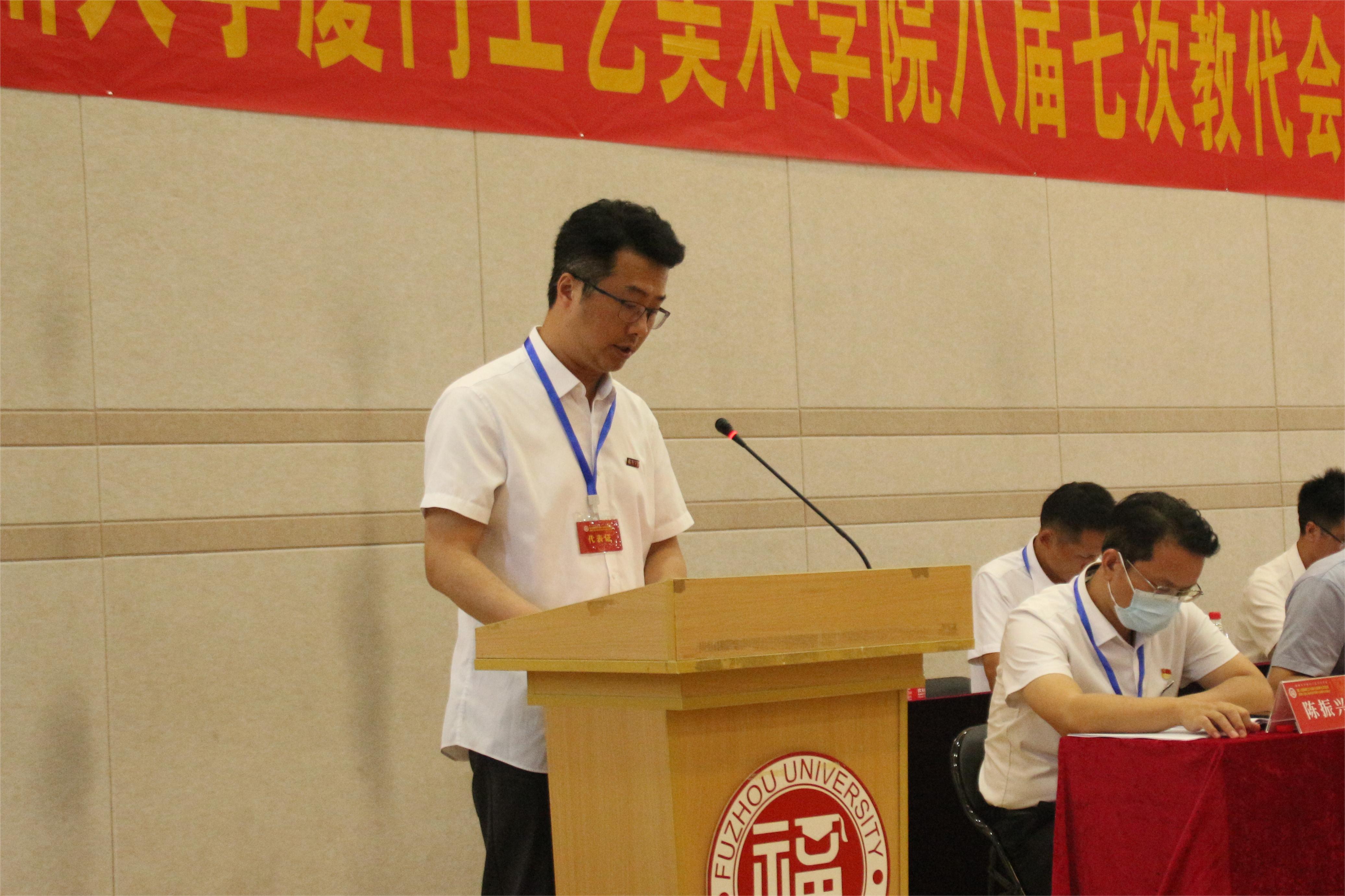 学院党委林金强副书记致开幕词,提出了本次大会的指导思想及主要议程,总结了一年来,在校党政的正确领导下,学院深入学习贯彻党的二十大精神,认真落实立德树人的根本任务,全面加强党的领导,不断加强和改进党的建设、深化教育综合改革、加强学科建设和人才引进、注重内涵提升,取得了令人振奋成绩。强调下一阶段工作要积极开展学习贯彻习近平新时代中国特色社会主义思想主题教育,加快推进学院“一号工程”建设和学院高质量发展,努力为国家培养更多“德智体美劳“全面发展的社会主义建设者和接班人,希望大会代表认真履行职责,积极建言献策。为学院建设成为“亚洲知名、国内一流,以传统工艺美术与现代创意设计为特色的艺术学院”作出积极的贡献,以优异的成绩迎接肉漫