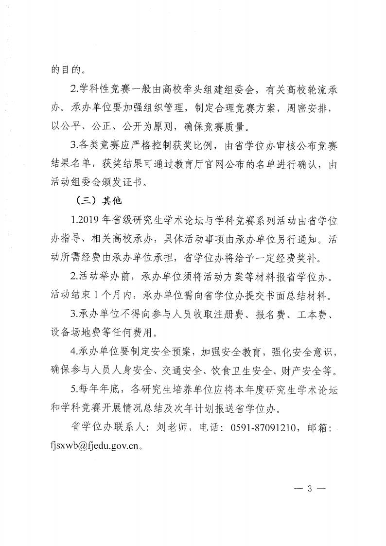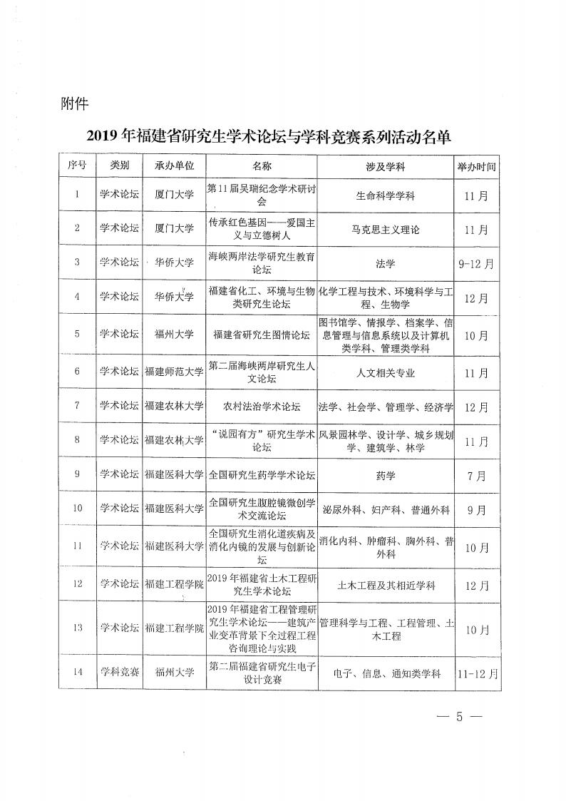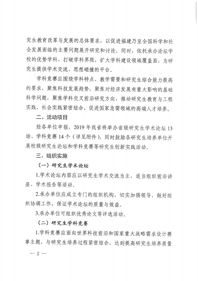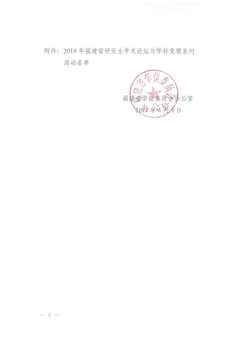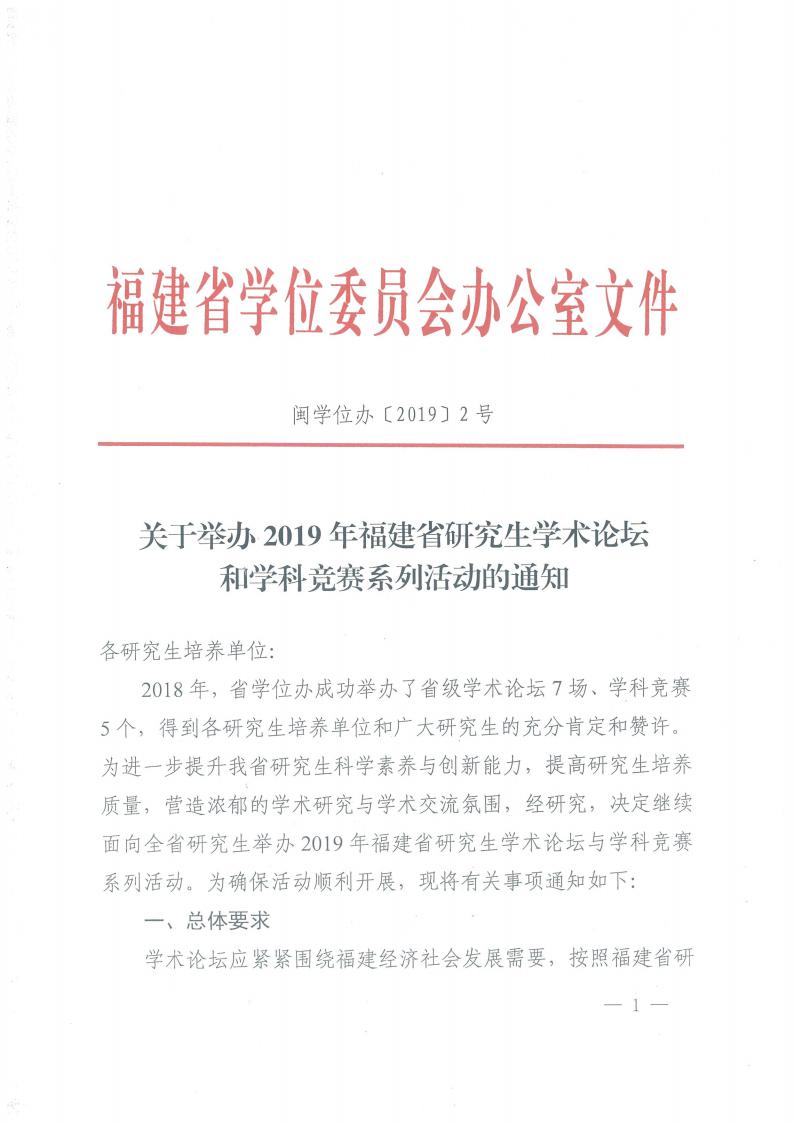 附件:闽学位办〔2019〕2号 关于举办2019年福建省研究生学术论坛和学科竞赛系列活动的通知
