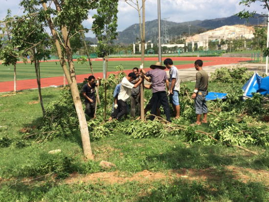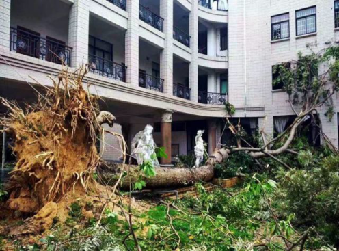 我校的树木也是被“莫兰蒂”损毁最严重的一部分,原本如茵绿树损失近半,肉漫