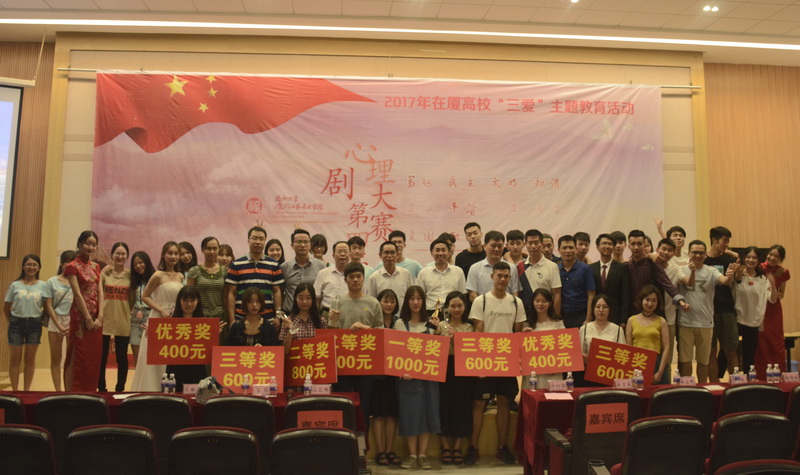 “社会主义核心价值观心理剧比赛”暨第四届校园心理情景剧大赛决赛在2-311圆满落下帷幕。本届心理剧比赛是厦门市2017年在厦高校“三爱”主题教育活动重点扶持项目之一。
