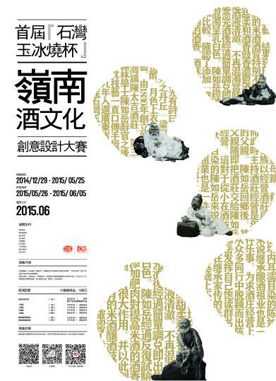 由世界华人美术教育协会指导,广东岭南酒文化研究院主办的“石湾玉冰烧杯”岭南酒文化创意设计大赛是持续12年以12生肖为主题的岭南酒文化创意设计征集大赛,2014—2015年举办首届大赛。本次大赛以“岭南文化传承”为宗旨,融合广东石湾酒厂集团酒文化及岭南文化,以生肖猴、岭南文化、岭南酒文化为创作元素,大赛奖金最高达人民币5万元。