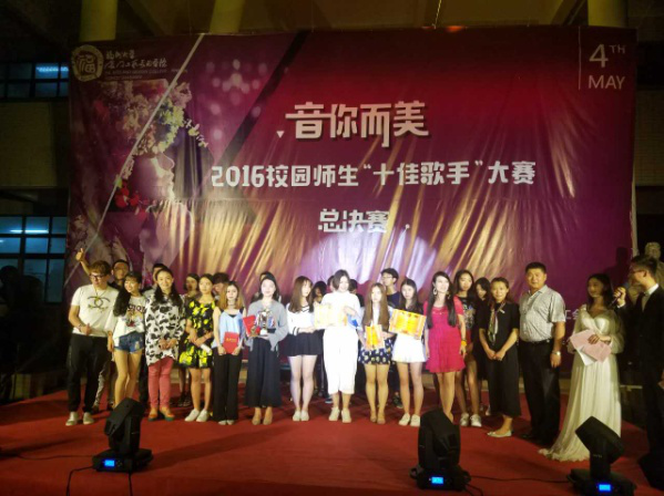 5月4日晚,由院团委、学院工会联合主办,2015级乙部分团委学生会承办的“音你而美”2016年校园师生十佳歌手赛在学院图书馆前隆重举行,本次大赛邀请了陈飞、曾智超林雅等著名歌手担任评委,经过精彩激烈的角逐,最后来自毕业班的胡睿同学获得本届十佳歌手冠军,谢青艺等十位同学获得十佳歌手称号,现场还有游荻菲、刘俊和李育君老师前来高歌助兴,现场气氛十分热烈。