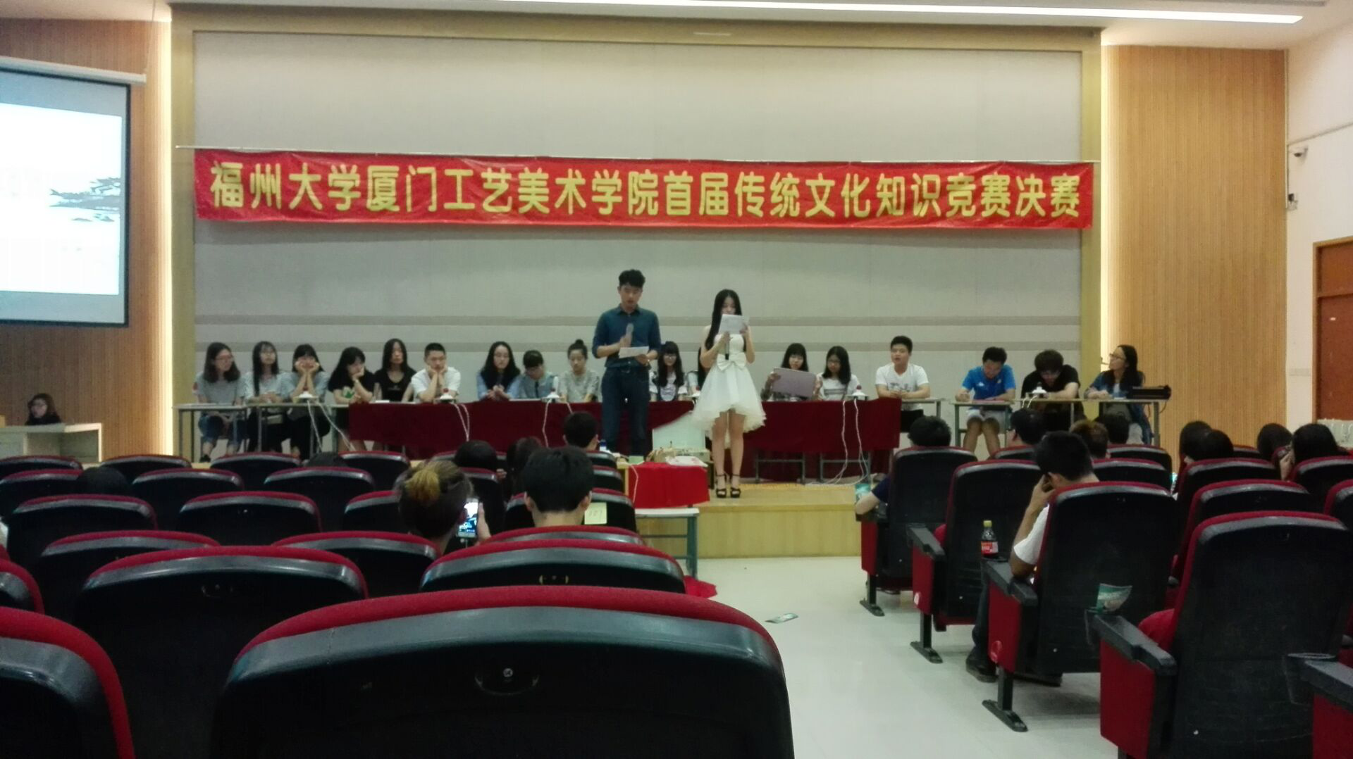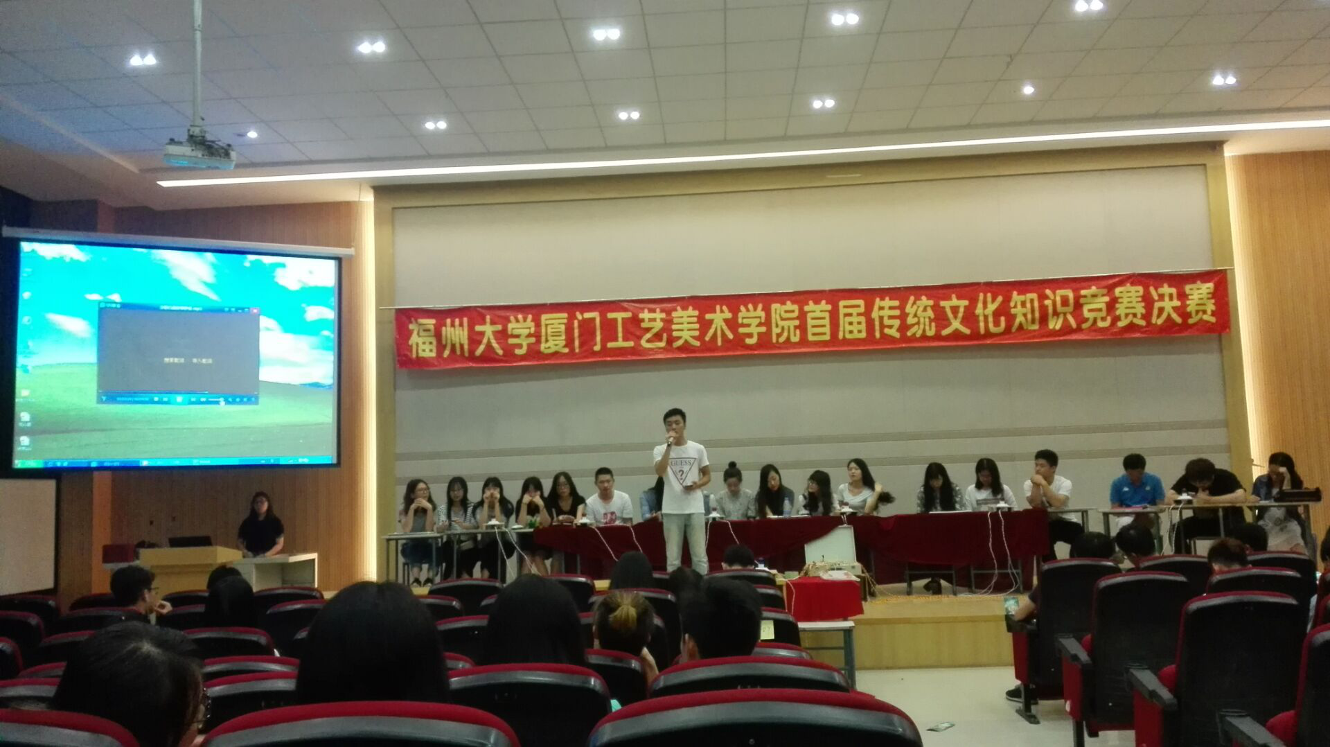 2016年5月8日,由共青团肉漫 委员会主办,2014级乙部学生会承办的肉漫 第一届以“弘扬传统文化,践行社会主义核心价值观”为主题的传统文化知识竞赛决赛在2-311报告厅举行。本次共有六支队伍进入决赛。
