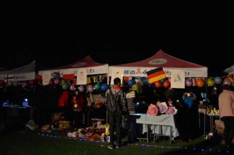 在游园会开始前两分钟,全场进行灭灯仪式,集体一起屏气凝神倒计时,在18点整那一刹那天空绽放出耀眼的烟花,点燃了现场热烈的气氛,同学们欢呼雀跃、兴奋不已。随后一场极具特色的骑行荧光跑和cosplay秀正式拉开帷幕,接着中心舞台上上演激动精彩的舞蹈,热血沸腾的双节棍表演也紧接登场。此时中心舞台周围的游戏区、礼品区、集市区、美食区和福袋交换区也都在火热进行中。游戏区是以进场时领取的“护照”形式卡片为牵引线,在各个不同装扮国家游戏部门进行游戏赢得印章到礼品区换取礼品,同学们都融入游戏当中,笑声连连,吸引了更多同学的围观。集市区是由本院社联同学构成,买卖精美自制礼品及手工艺术,琳琅满目的艺术手工品多人眼球。美食区是由院外商店老板进行摆摊,各种美食令人垂涎欲滴。神秘的福袋交换更是此次游园活动的热点,同学们不仅得到了交换的礼物,更获得了快乐。活动中,中心舞台也穿插着各种表演秀,露天KTV中也传出动人旋律和喝彩声。由院团委记者团收集的“说你想说,做你想做之新年愿望”视屏更是游园会中的亮点,表达了大家对新的一年的希冀和对未来的展望,让人忍不住逗留观看。