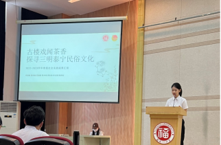 福建民俗文化探密队从客家文化、茶文化、饮食文化以及妈祖文化4个部分,向大家展示福建民俗文化探密的成果。实践队员从含义分布,过年、过节的一些习俗特色和特有建筑来介绍了客家文化,从妈祖形象,历史渊源,文化习俗以及妈祖精神4个方面向同学们介绍了妈祖文化。