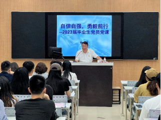 党委副书记林金强在教学楼2号楼208智慧教室讲授题为《自信自强,勇毅前行》的专题党课,学院党委委员、团委书记陈振兴老师,辅导员庄志英、陈惠莹和全体2023届毕业生党员参加。