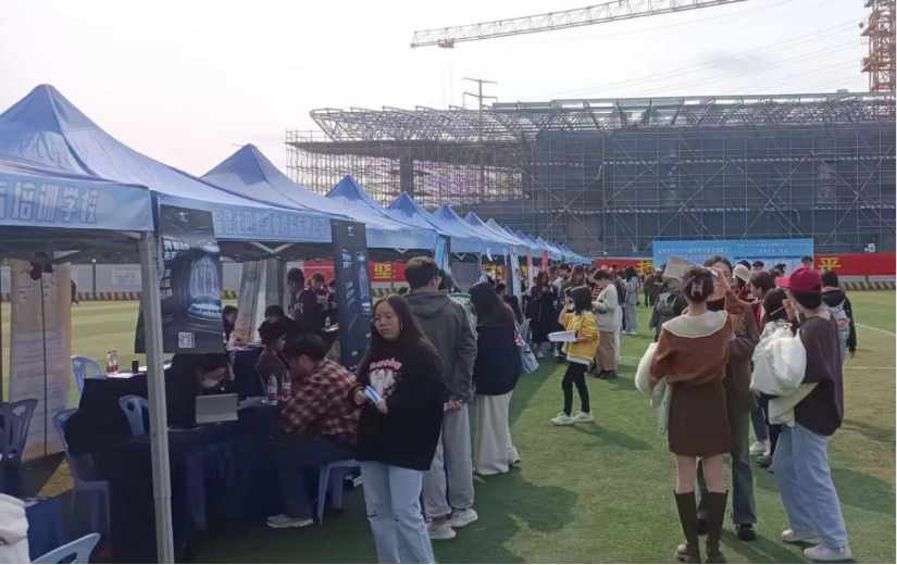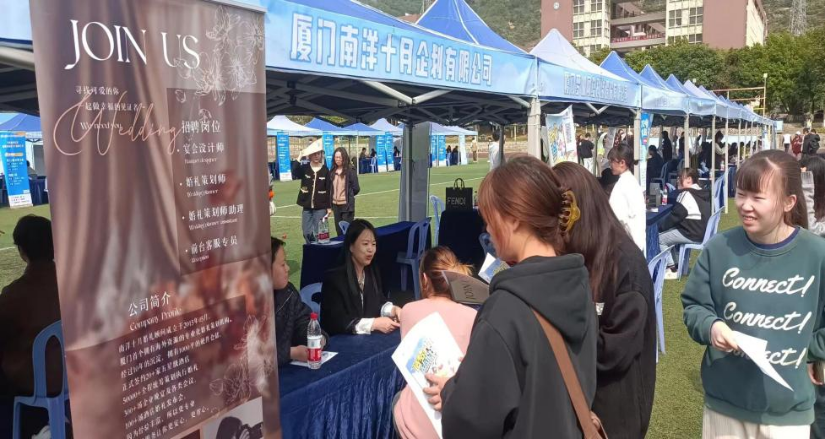 集美校区操场举行。来自北京、上海、苏州、福州、厦门、泉州等56家用人单位参会,提供就业岗位1311个,吸引了400多名毕业生及大三学生到现场寻求就业实习岗位。