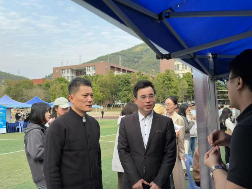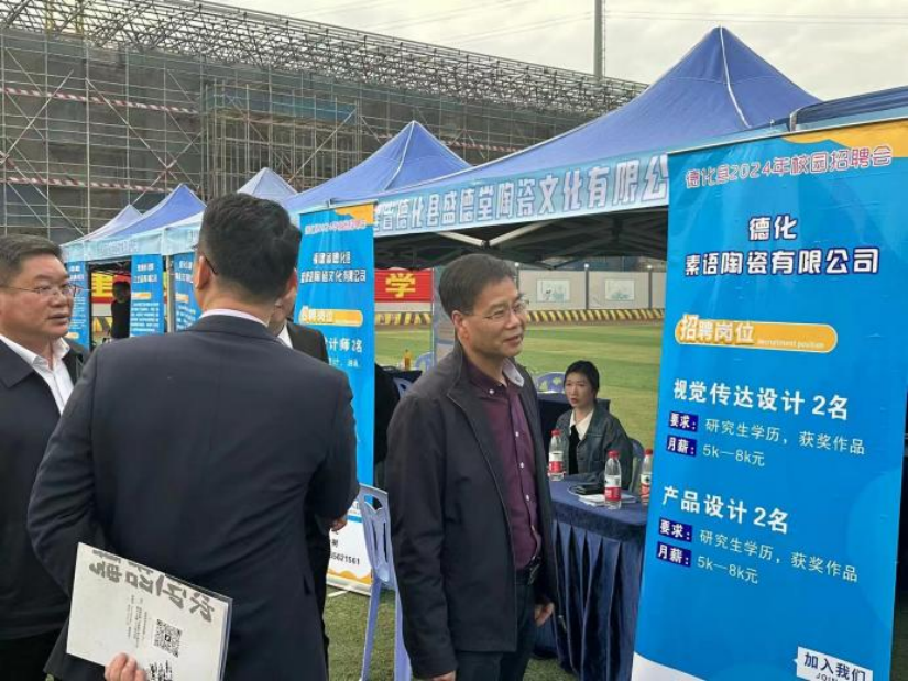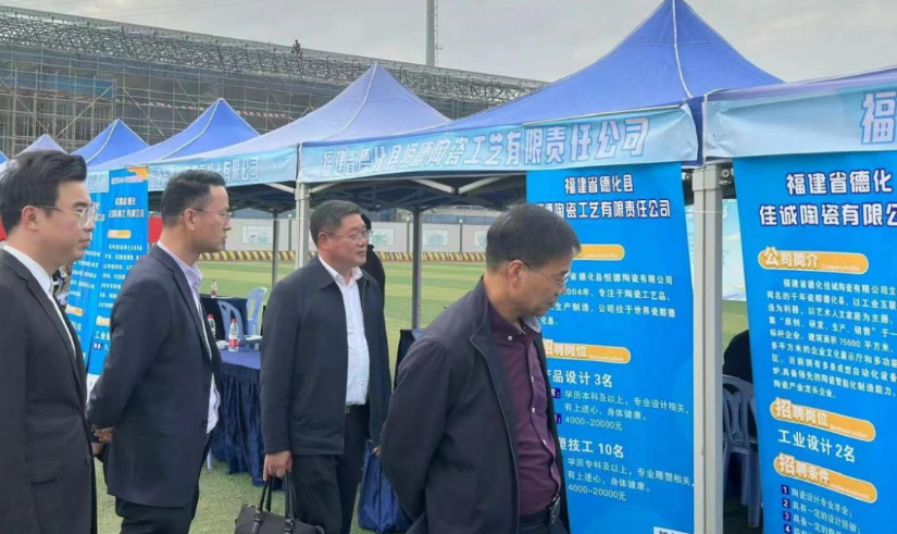 福建省泉州市德化县组织了12家企业参加本次招聘会,德化县委统战部常务周启宗副部长、德化县委组织部副部长、县公务员局陈志宇局长、德化县人力资源和社会保障局许全福副局长带队参加招聘会,在现场开展了人才政策宣讲、校地对接座谈会等活动。