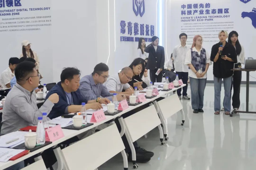 区别于往届比赛,学生创新大赛从校内“演给自己看”转变为到校外“演给大家看”。学院党委林金强副书记、团委骆锦程副书记、服装系教师危希曦博士、东纶集团执行总裁、常青藤科技园蔡志彬董事长、常青藤工业产品设计与创造中心李俊主任现场观摩比赛。