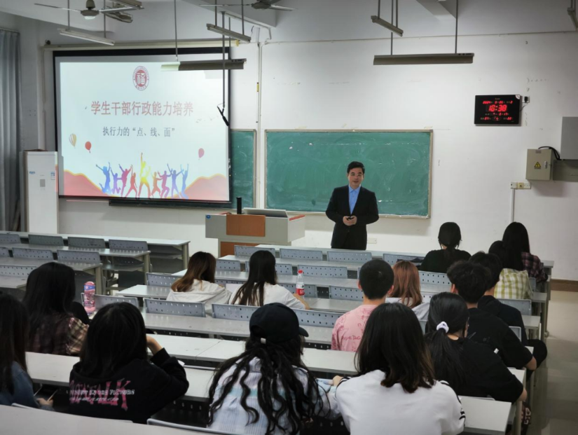 2号教学楼204教室召开,由团委副书记骆锦程老师给学生干部进行“学生干部行政能力培养”的主题培训。
