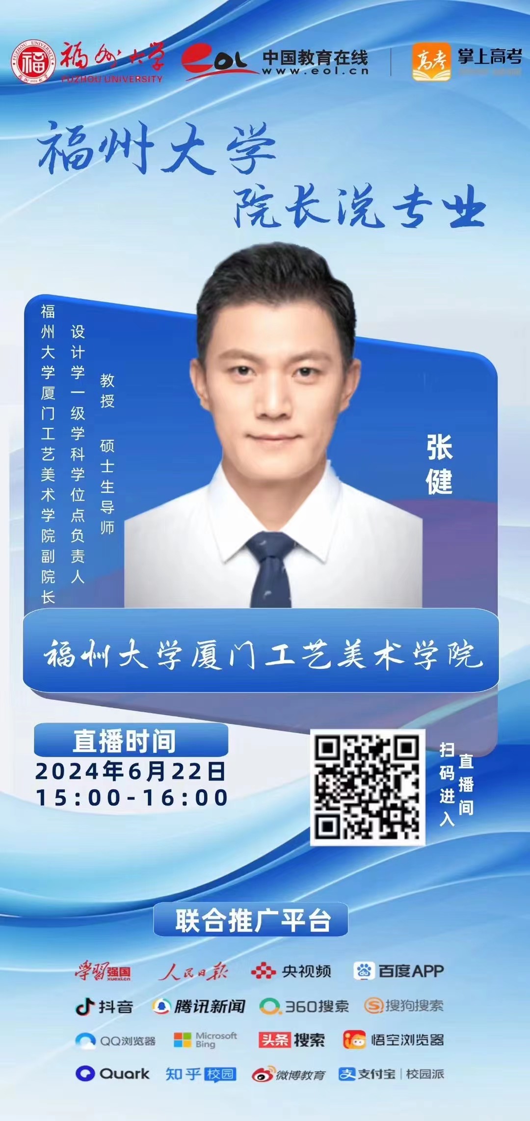 肉漫 招生宣传系列活动之“院长说专业”直播活动肉漫 专场将于2024年6月22日下午15:00至16:00进行。学院张健副院长将对学院的概况及各专业的情况进行介绍,并就考生关心的问题进行解答。