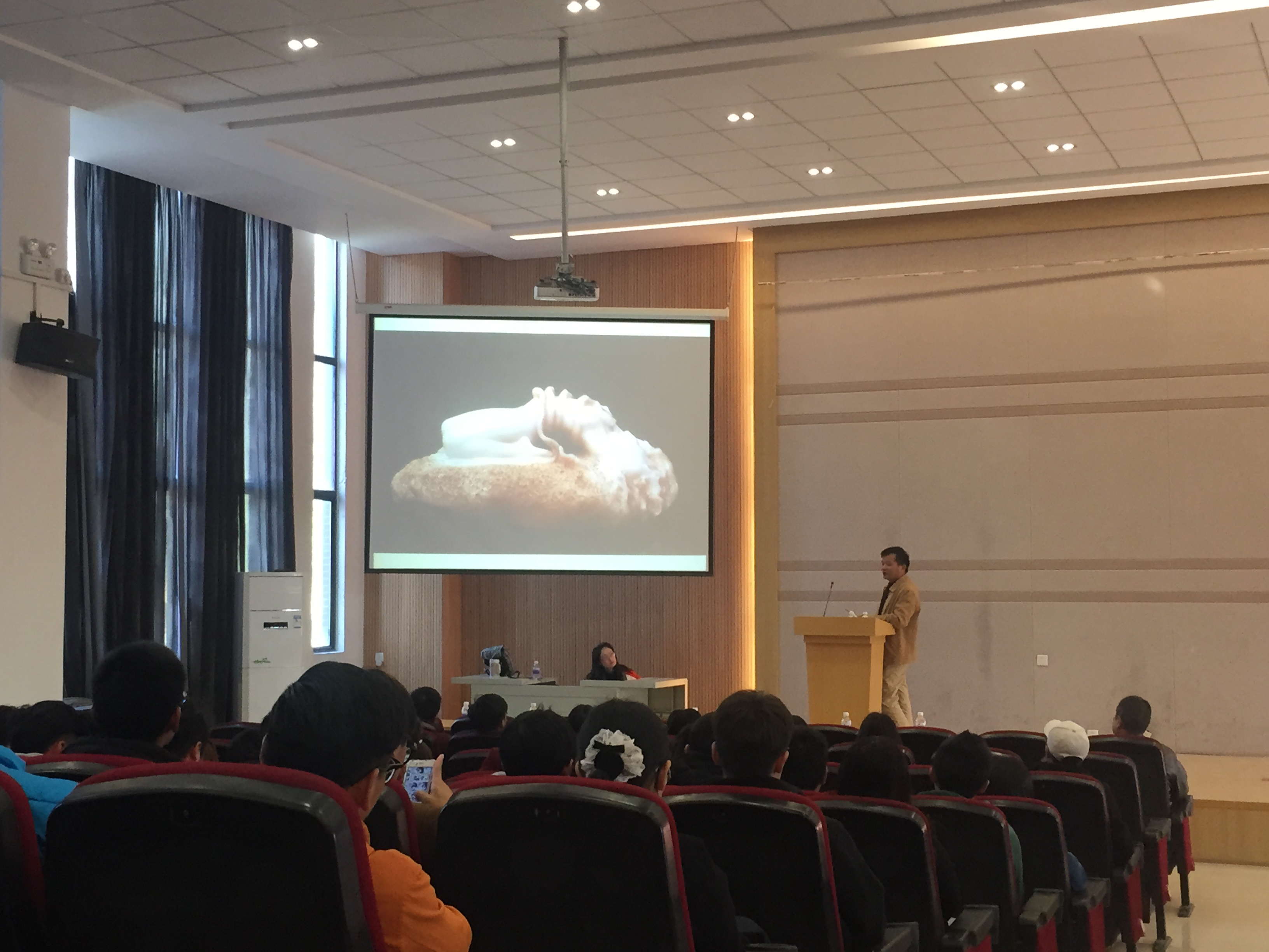 校友林飞回母校参观访问,受到学校领导师生的热情接待。当天下午林飞老师在学术报告厅成功举办《因材施艺——浅谈寿山石雕刻》讲座。在讲座中,林飞老师从寿山石的分类和技法开始谈起,结合个人的创作经验,用风趣平实的语言向同学们介绍了寿山石石材的美妙和石雕的意趣。他的创作经历深深吸引了在座的广大师生。期间学生多次对林飞老师报以热烈掌声。