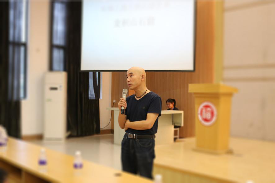 在骆锦程老师的主持下,学术讲座论坛正式开讲。首先是院雕塑系佘国富教授发表讲话,向我们简单介绍了段一鸣校友的履历。接着段一鸣校友被邀请上台,台下同学们齐声呼喊“学长好!”表示对学长热烈欢迎。