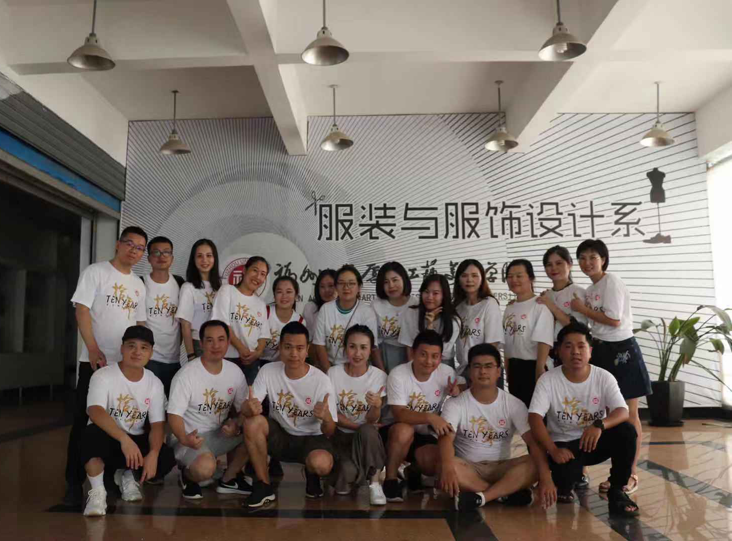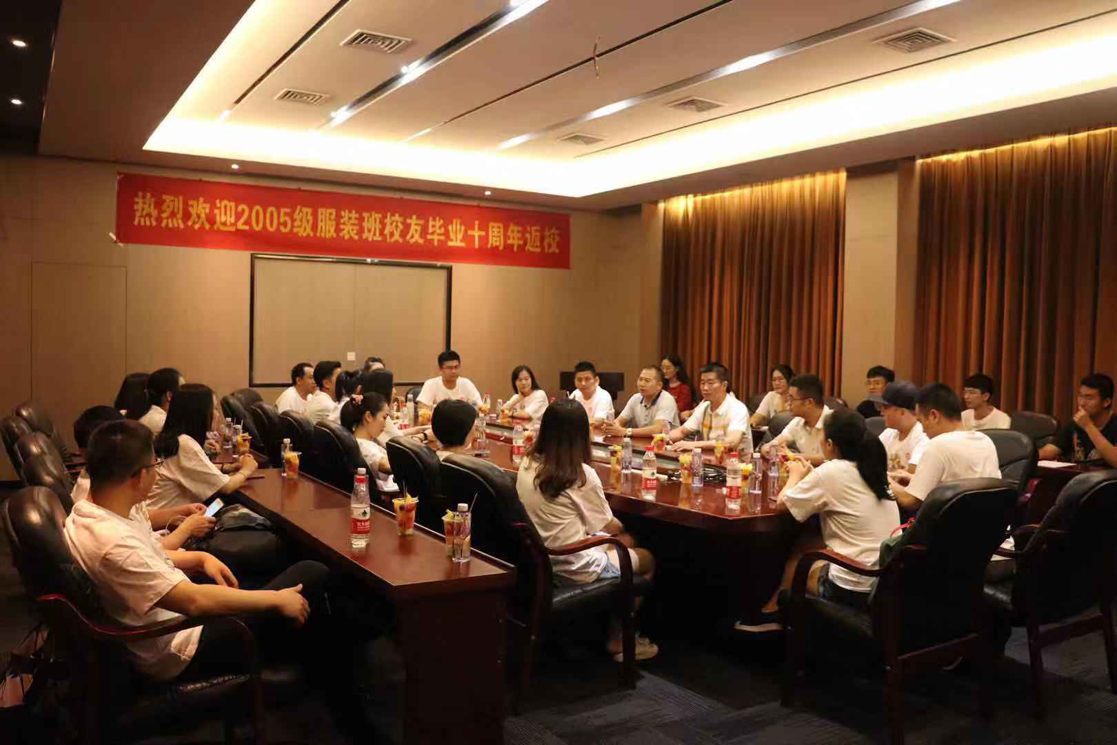 9月14日上午十时许,2005级服装班校友值毕业十周年之际,重返母校。20名同学荟萃一堂,于学院2号楼107会议室召开座谈会,抚今追昔,难忘似水流年;翘首企足,殷盼光明未来。院党委副书记、校友会会长林旭,院总务科科长、保卫科科长唐水宝,校友办副主任于航勇老师与校友们热切交谈,并对2005级服装班校友们的到来致以热烈欢迎。