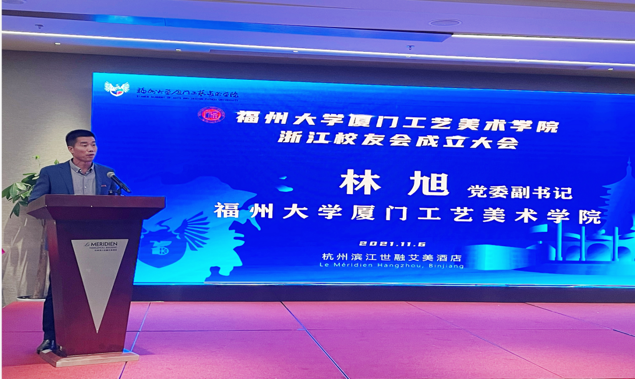 党委副书记林旭在会上致辞,对学院浙江校友会的成立表示热烈的祝贺,对美院校友对母校的支持表示衷心的感谢,对校友们利用所学知识、发挥自身特长,在各行各业做出了令人骄傲的业绩表示充分肯定。期待校友会发挥积极作用,架设母校与校友、校友与校友之间桥梁,共同建设美丽温馨的校友之家。