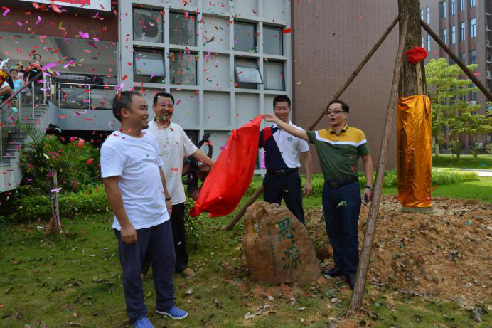 在二十周年到来之际,96届校友们为学院捐赠了两颗香樟树,并在树旁立一枚纪念石,取名“思源”,借以表达校友们对母校的感恩和挂念。捐赠仪式上,学院领导和校友们一同为纪念石揭幕。