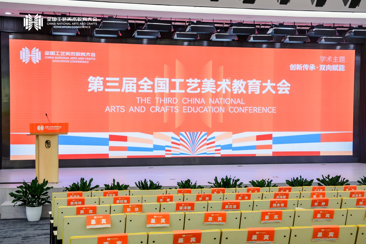 2025年9月27日,由中国工艺美术学会、清华大学美术学院共同主办的“2025第三届全国工艺美术教育大会”在北京开幕。中国工艺美术学会党委书记、理事长才大颖,中国工艺美术学会副理事长、教育专委会主任、清华大学美术学院院长马赛在开幕式致辞。开幕式由中国工艺美术学会教育工作委员会秘书长、清华大学美术学院党委副书记王晓昕主持。