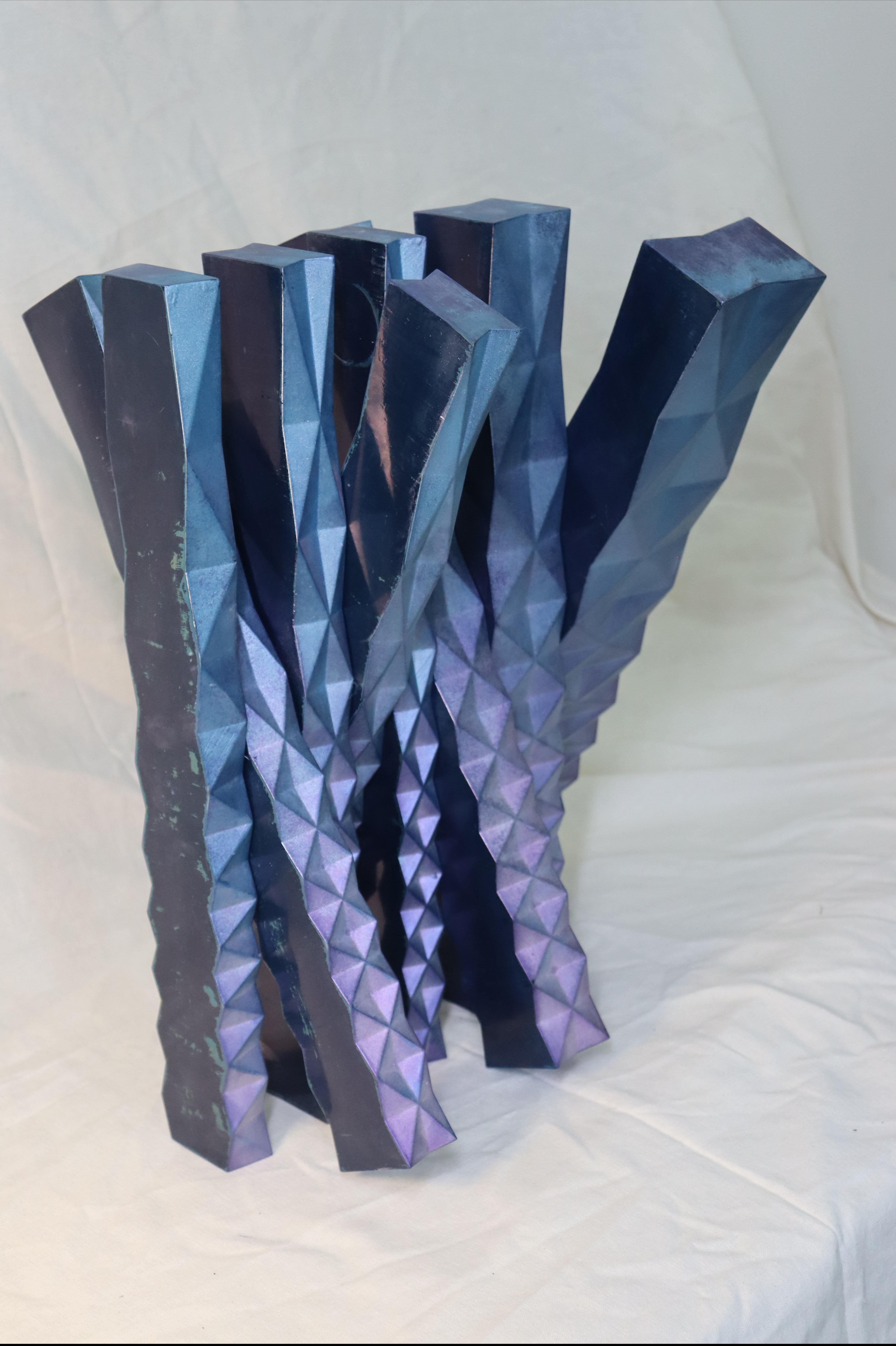 设计理念:《青石浮光》以现代陶艺为载体,融合传统青石质感与光影流动之美,通过抽象造型与釉色实验,探索自然与人工的对话。作品兼具沉稳与灵动,诠释材质与空间的当代审美意趣。