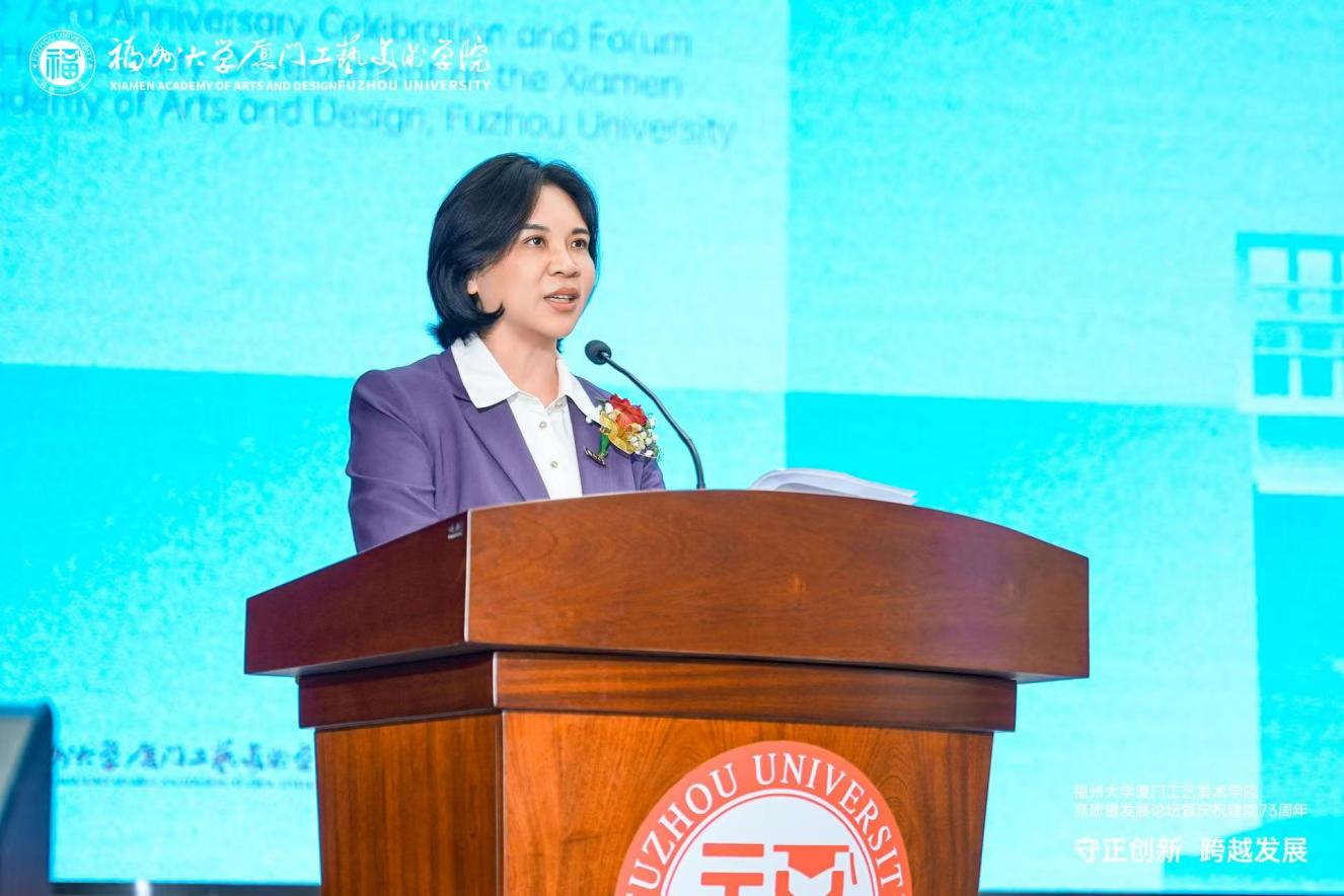 校长吴明红院士在致辞中指出,“漆画专业五十年来坚持传承创新+产教融合,已发展成为学校最具特色和影响力的品牌专业之一”,办学水平全国领先。她强调,学院要坚持守正创新,深化产教融合,加强队伍建设,培养德艺双馨人才,推动漆画艺术在新时代焕发新光彩,为增强国家文化软实力贡献福大力量。