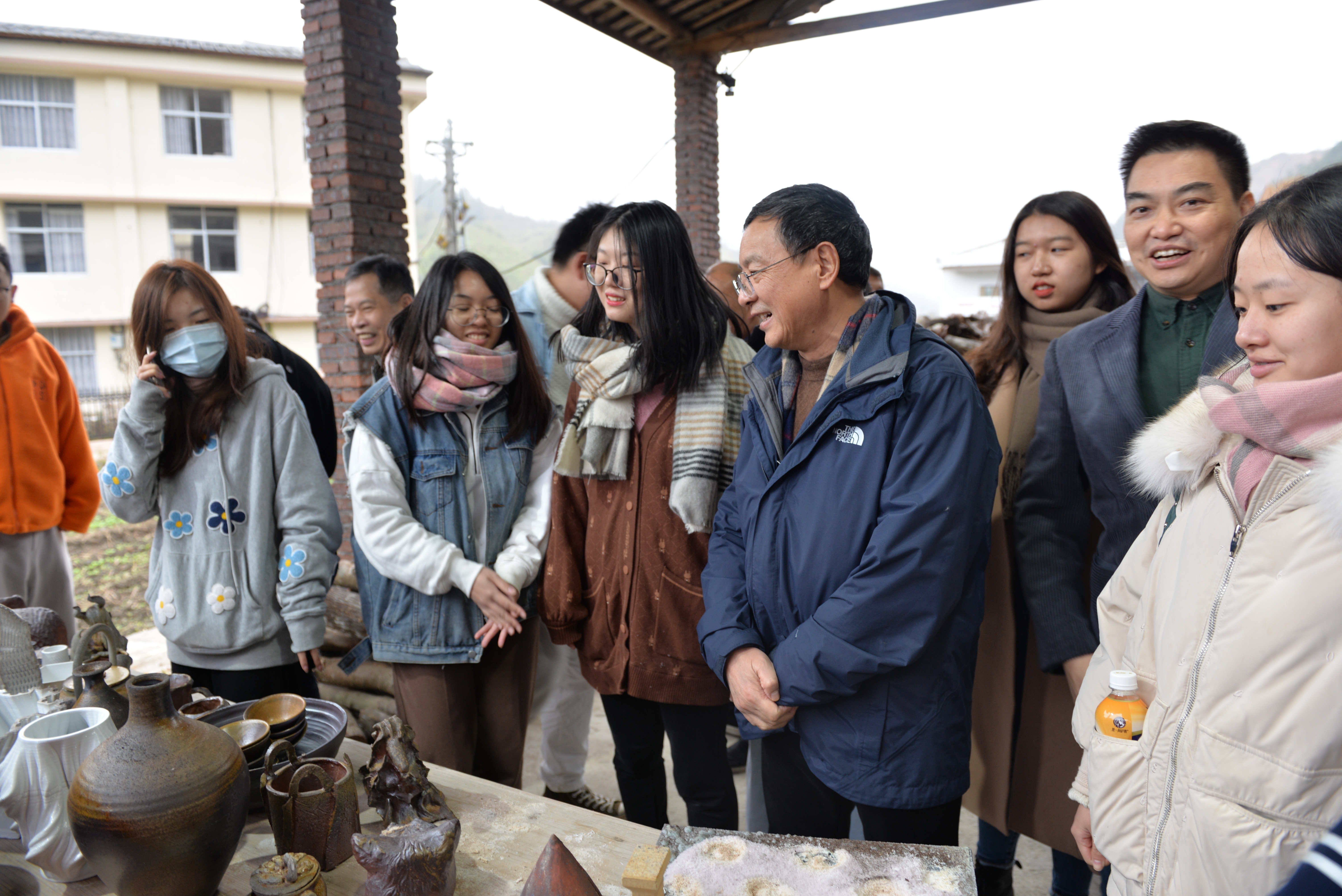 黄志刚副校长一行还听取了实践带队老师、学院副院长林梓波教授关于实践基地建设与实践教学情况的介绍,详细参观了基地创作实践工作室、作品展示厅、柴窑工作坊、学生宿舍等场所。调研考察中,黄志刚副校长充分肯定了该基地“扎根乡村振兴、服务贡献社会、美劳深度融合”的培养特色和优势,强调指出学院要以一流社会实践基地建设为标杆,完善与上涌镇、曾坂村的合作机制,进一步整合优质资源,扩大该基地的学生参与受益面,擦亮实践基地品牌。