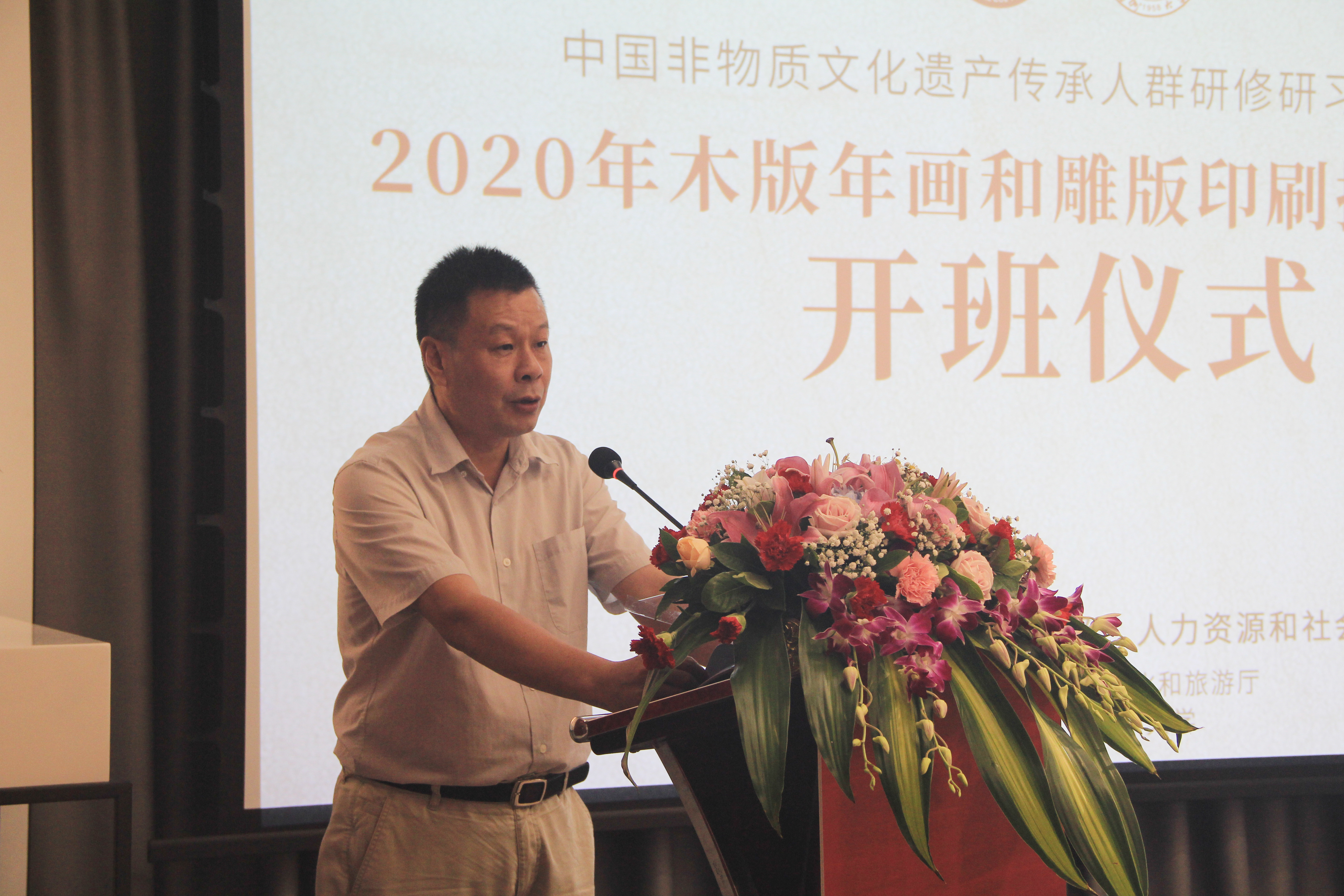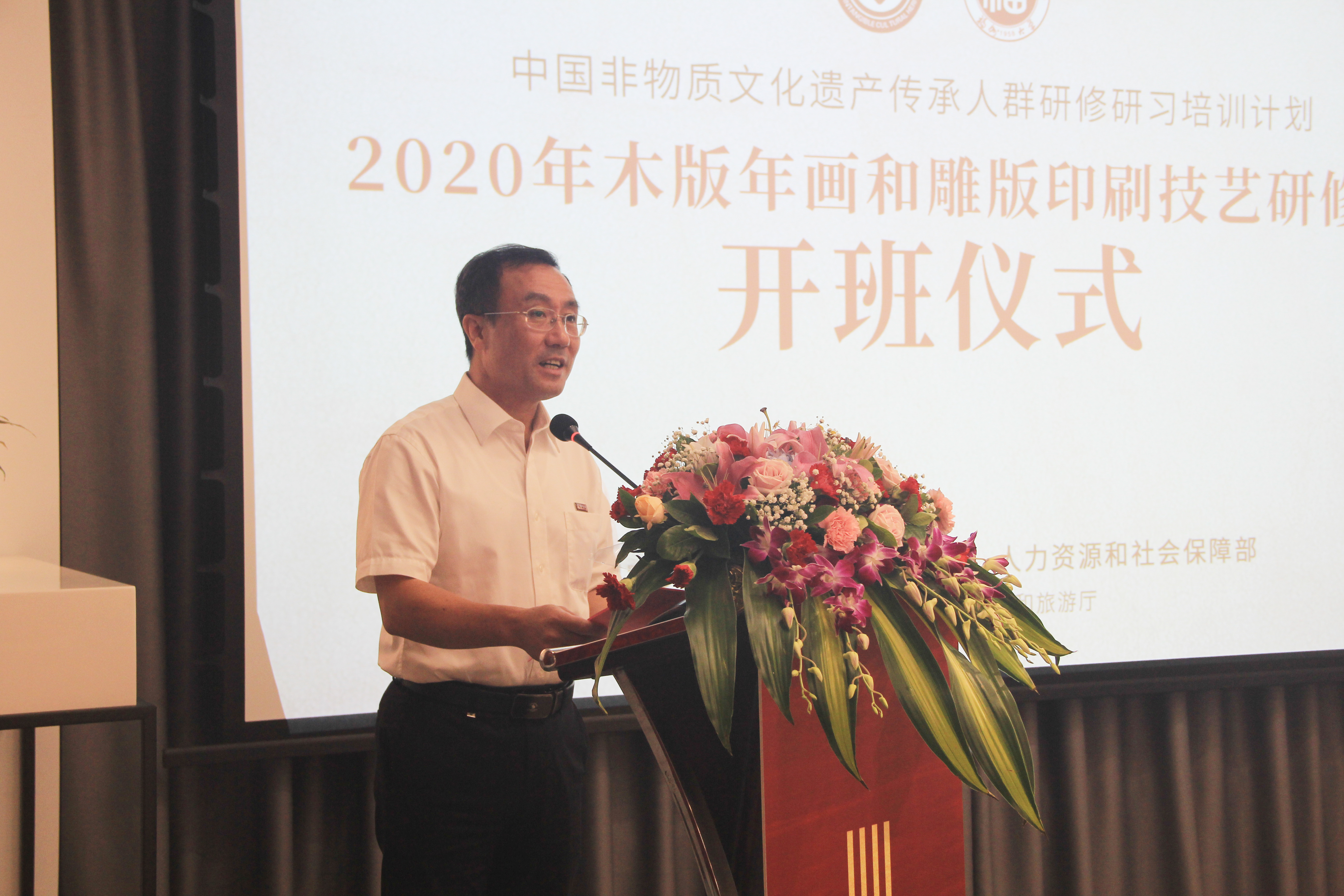 福建省政协副主席阮诗玮说:“今天是是我国第36个教师节,在此谨向各位老师致以节日的问候!今天也是2020年木版年画和雕版印刷高研班开班的好日子,在此对本次高研班的开班表示热烈的祝贺,并预祝本次高研班取得圆满成功!”