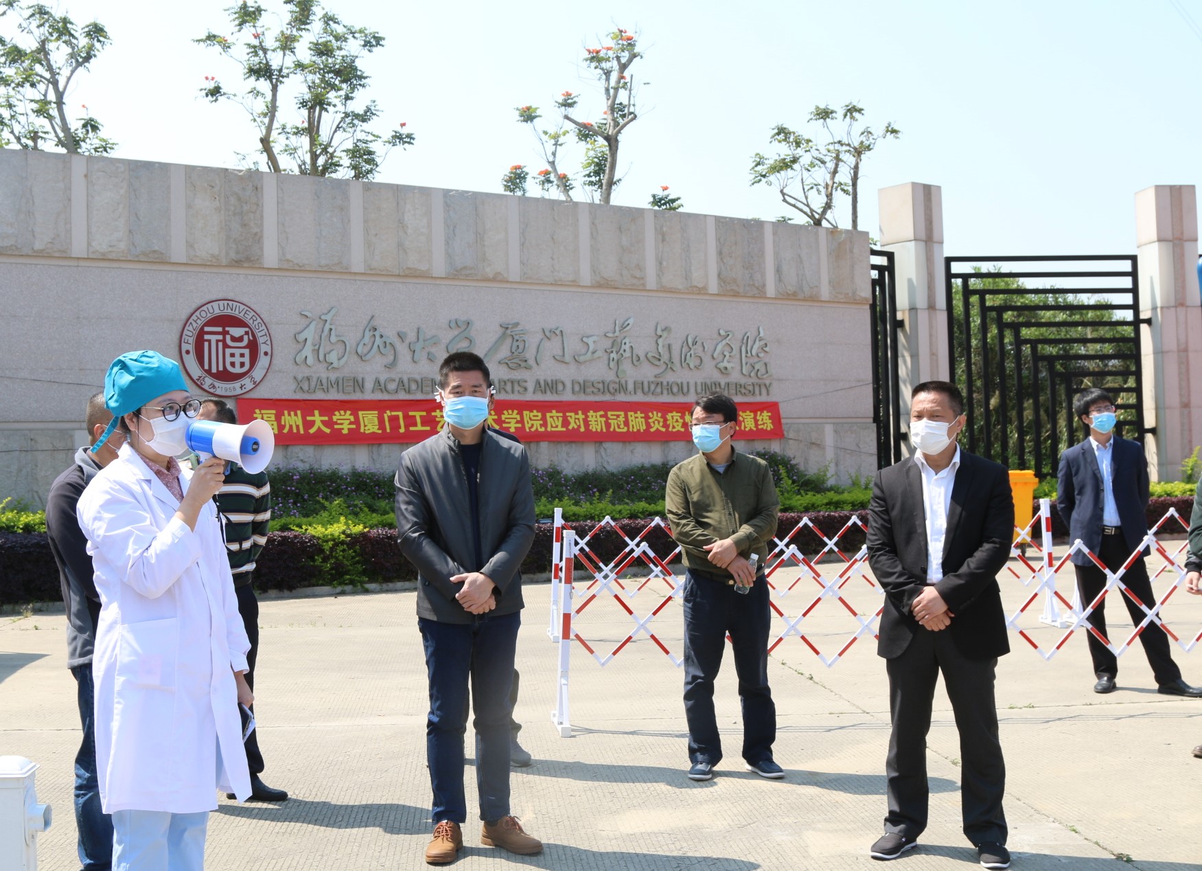 在集美校区组织开展应对新冠肺炎疫情模拟演练。此次演练是模拟学生返校报到时的情景及出现紧急情况的应急处置片段。学院党委黄阿火书记、林旭副书记、纪委张华华书记、林金强副院长、学院疫情防控领导小组成员及学生科辅导员、总务科(含医务室)、保卫科、物业、保安等相关人员参加了演练。