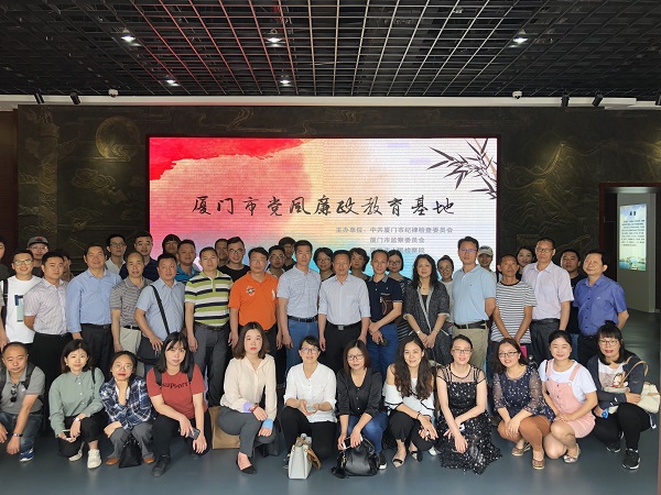 2019年4月25日上午,学院党委、纪委组织党员干部到厦门市党风廉政教育基地参观,到现场接受党风党纪教育。在基地工作人员的带领下,学院党员干部逐一参观了三个展厅所有单元的图文展示,大家认真聆听解说员的介绍和讲解,仔细阅读图文内容,集中观看基地安排的宣传教育视频,参观现场秩序井然,教育效果良好。最后在基地工作人员的领誓下,大家面对党旗,举起右拳,再次重温入党誓词。学院党委黄阿火书记、林旭副书记、纪委张华华书记、吴绍兰副院长、林金强副院长及中层党员干部、教工党支部书记和机关党员等共60多人参加了上述活动。