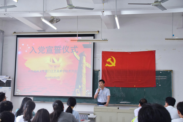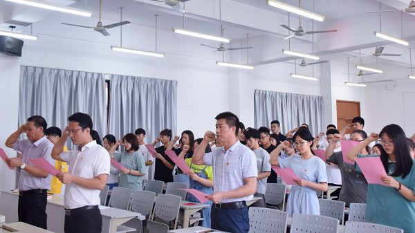 6月6日下午,学院党委在公教2#208举行了庄严而隆重的入党宣誓仪式。学院党委副书记林旭、学院党委委员、团委书记、学生科科长陈振兴、各年级辅导员、党办工作人员以及新发展的42名党员参加了宣誓仪式。本次仪式由学院党办主任林瑞来主持。