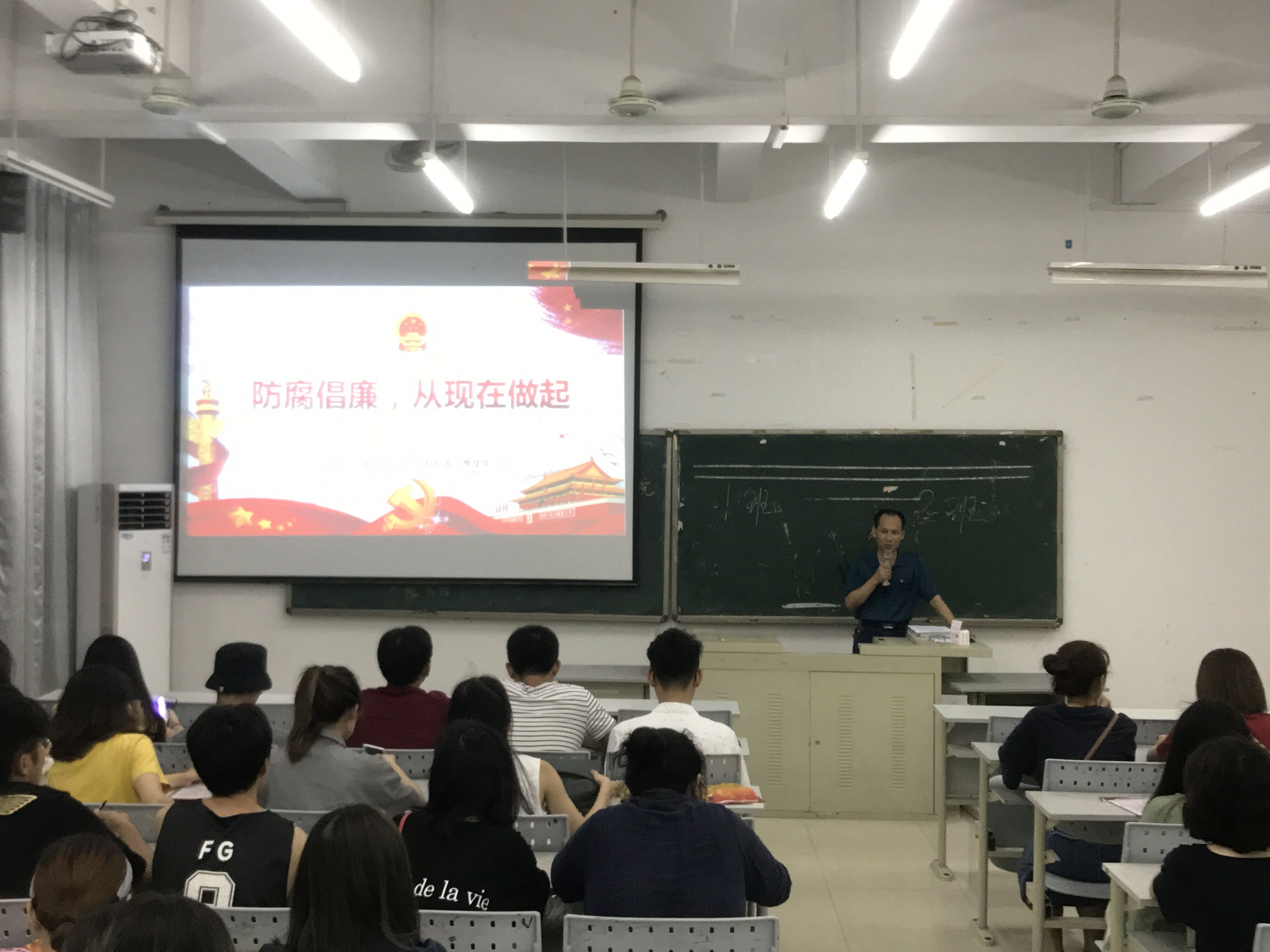 为更好地在毕业生党员中开展廉洁教育,引导即将走向社会的毕业生党员坚定理想信念、永葆共产党人本色,学院党委于2019年6月18日晚在1号楼311教室举办毕业生党员“走好人生第一步”专题党课,学院纪委书记张华华同志作了《防腐倡廉,从现在做起》的专题讲座。