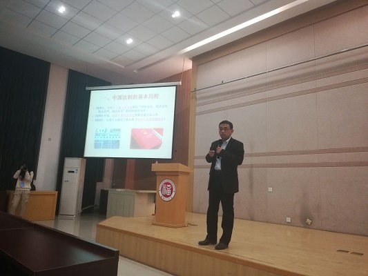 黄辉教授主要从“中国法治的基本历程”“法制与法治的内涵和区别”“全面推进依法治国基本内容”三个方面讲述了中国的法治建设。