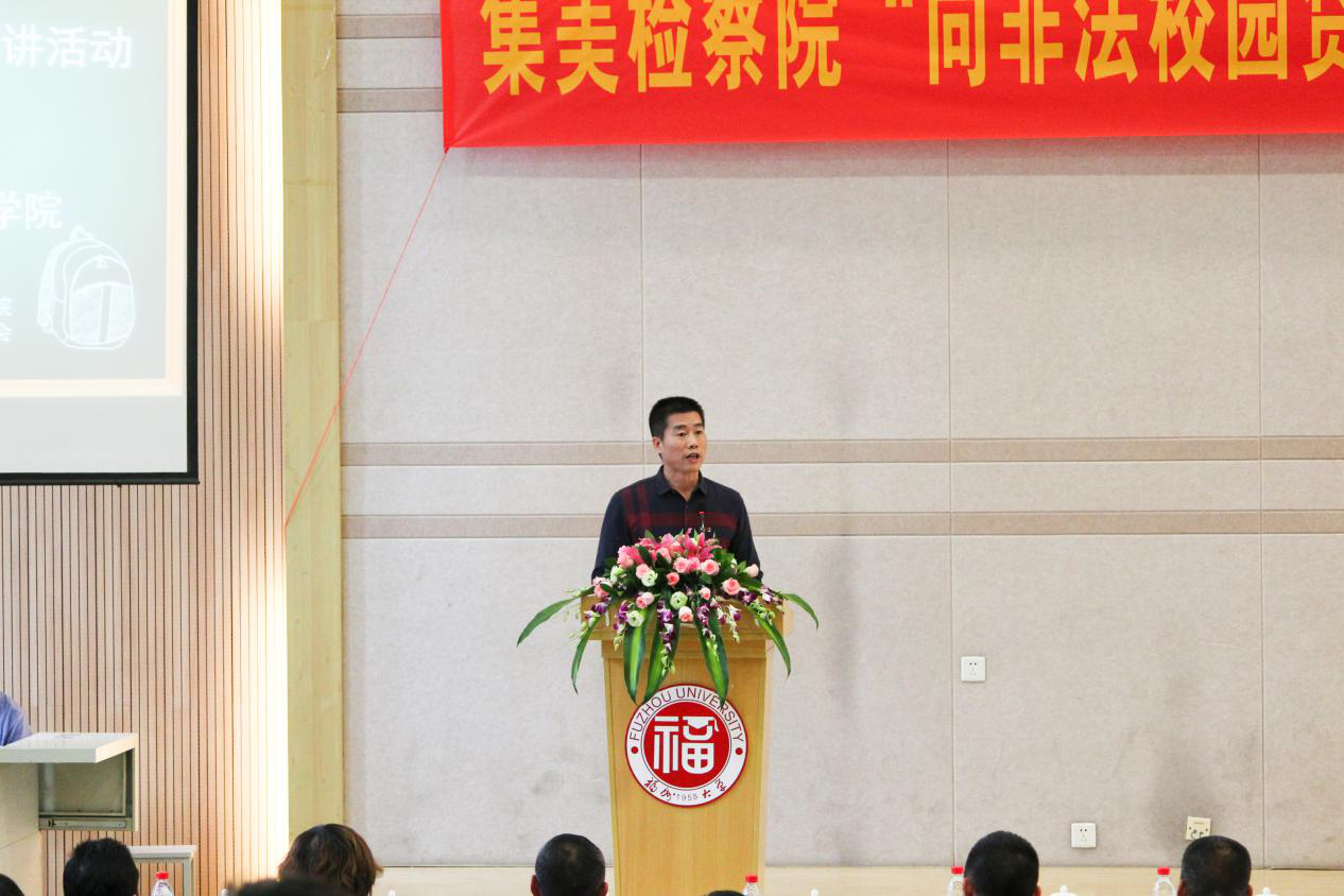 党委黄阿火书记、林旭副书记,厦门市检察院未成年人监察部肖劼副处长,集美区检察院彭明武检察长等领导,集美文教区管委会鄢荣钗副主任、林幼治女士。讲座邀请了集美区检察院郭太山检察员为我校师生作专题讲座。