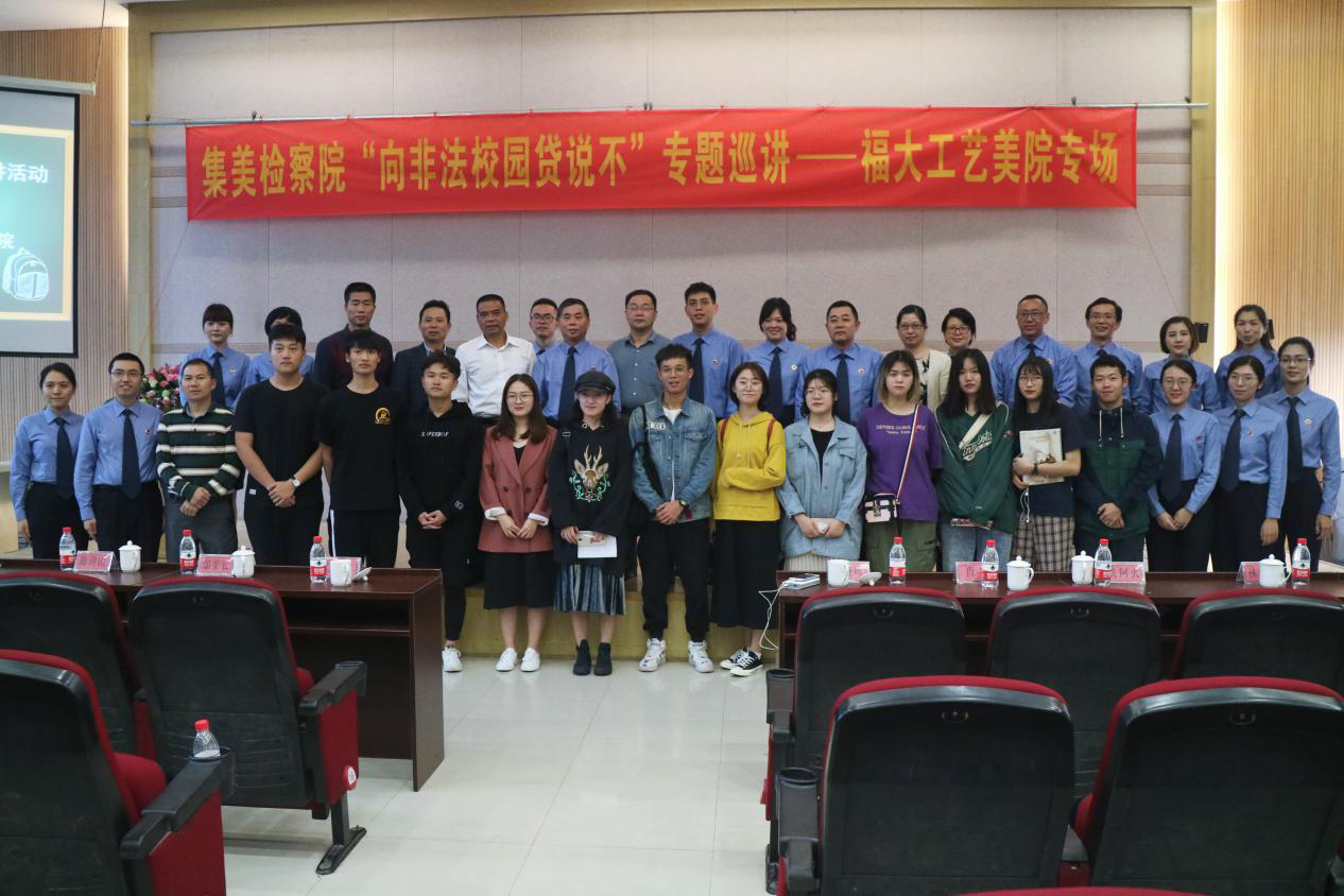 讲座最后,检察官带来了自弹自唱的《抵制不良校园贷联盟》,将讲座推向高潮!“法,既是正义的直尺,更是大家可靠的港湾。望大家知法、尊法、守法、用法,面对非法校园贷,我们要勇敢说不!