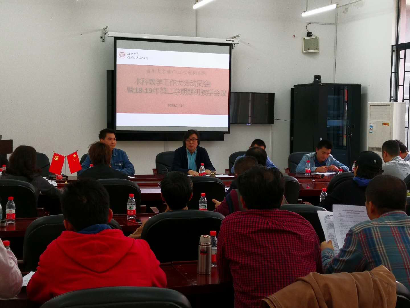 在2号楼107会议室召开2018-2019学年第二学期期初教学工作会议暨“本科教学工作大会”动员会。十三个系(部)的主任、副主任及教务科全体成员参加了会议,会议由林梓波副院长主持,李超德院长出席会议并讲话。