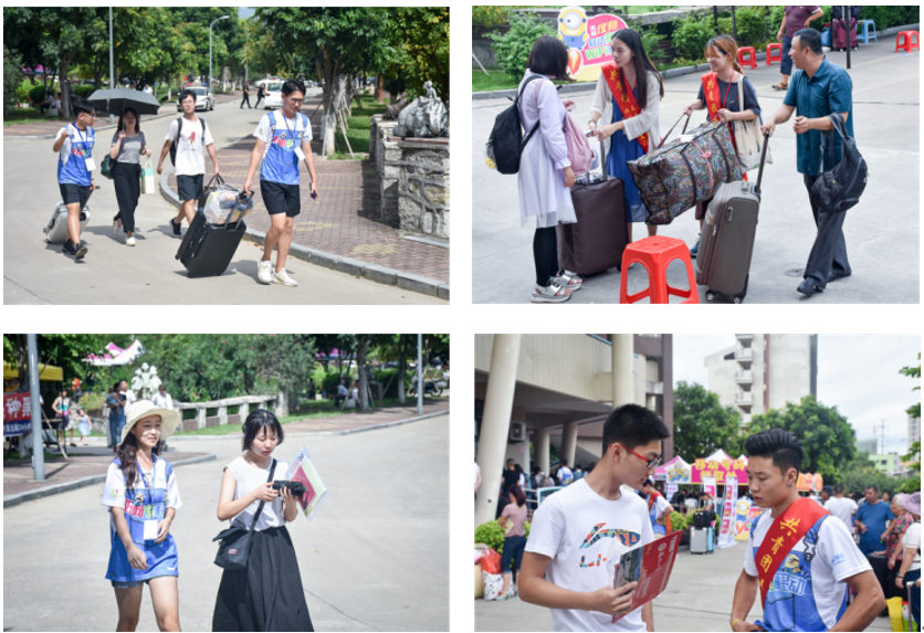 等着一段故事,守着冷暖交织的光阴。远方除了遥远,还有幸福与希望。大学的生活是一段新的开始,是一个新故事的开始。各个学长学姐做好充分的迎新准备工作,等待着他们的到来。厦门北站接待组是本次迎新工作的主力军。师生志愿者们早上7:30就等在北站出站口。举牌引导,帮提行李,递水问候,学长学姐鼎立相助,只愿18级的小可爱们背起行囊,踏上行程,也愿前景可赴。院党委黄阿火书记、林旭副书记、保卫科唐水宝科长特地到北站接站点关心了解迎新工作,还热情亲切地与新生及其家长交流与问候。