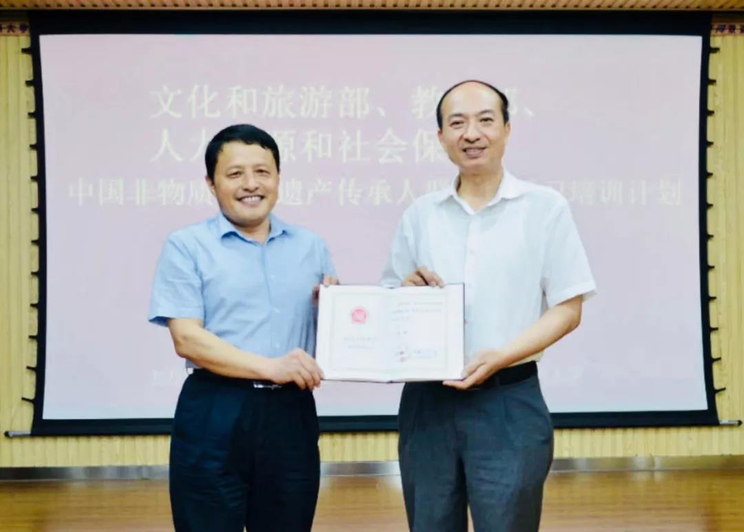 非物质文化遗产研究首席专家”聘书,并表示热烈祝贺。教师代表潘尤龙教授在发言中强调,严格按照“强基础、增学养、拓眼界”的总体要求,根据我省文化厅的具体指导意见,科学设置培训课程,办出 “特色”、办出“精品”、办出“成效”学员代表杨庆聪班长在开班仪式上与大家分享三点感悟。第一,端正学习态度,拓展创作思维。第二,掌握破解办法,明确发展方向。第三,积极参加活动,增强团队。他还说到:“将以此次学习为契机,用所学知识武装头脑,更加主动拓展思路,不断创新作品,努力推动艺术的提升,进一步提高非物质文化遗产保护与传承水平,弘扬中华优秀传统文化奉献一份力量。”