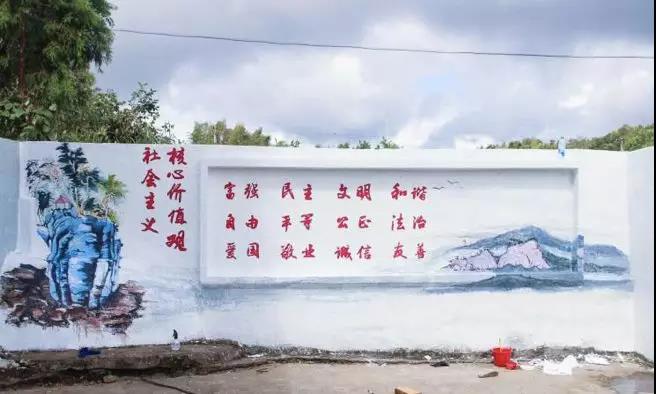 “赴霞浦美丽乡村建设实践队”用社会主义核价值观扮靓墙面,既扮靓了周边环境,更成为展现文明始兴风尚的一道靓丽风景线,深受村民的好评和欢迎。