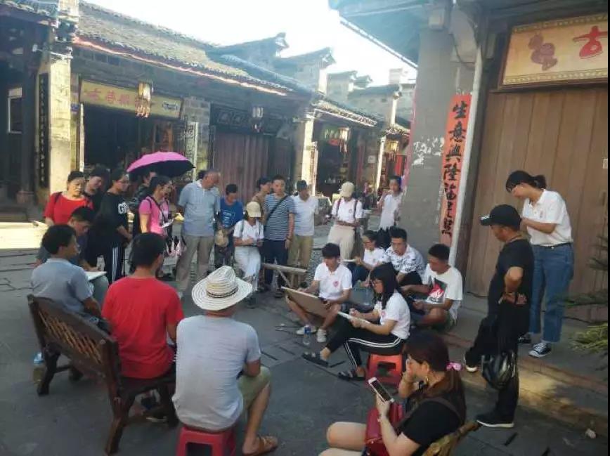 赴泰宁艺术采风实践队前往泰宁古城为市民义务画肖像画,为了能够服务到更多更广的人,队员们特地将活动选择在人流量密集的尚书第前门广场。活动刚刚开始,队员们还有一些紧张,不过随着得到游客和市民的认可越来越多,队员们也开始越来越自信,在与“模特”的轻松的交谈中为来往人们画出一幅幅生动的肖像画。