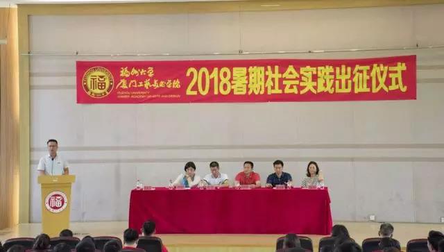 于二号楼311报告厅举行了2018年大学生暑期“三下乡”社会实践活动出征仪式。 参加此次出征仪式的有学院党委书记黄阿火,学院党委副书记林旭,副院长林梓波,院工会主席林青,院党委委员、团委书记兼学生科科长陈振兴,院公共文化部主任徐玲,参加暑期社会实践的带队老师以及实践队员。