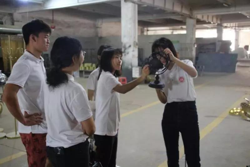 首先,公司负责人带领同学们参观了聚丰工艺品有限公司以及富华工艺品有限公司的工艺品展厅,对公司文化与内涵进行了一定的了解。与富华董事长叶文土先生及设计师经验交流后,对于公司的风格与理念有了更深的了解。接着,同学们一起来到了聚丰的研发中心与生产车间,对工艺生产、制作流程进行了一定的了解与熟悉。在师傅灵巧的手中,一件件精致的藤铁工艺品新鲜出炉,带给了同学们无限的灵感。