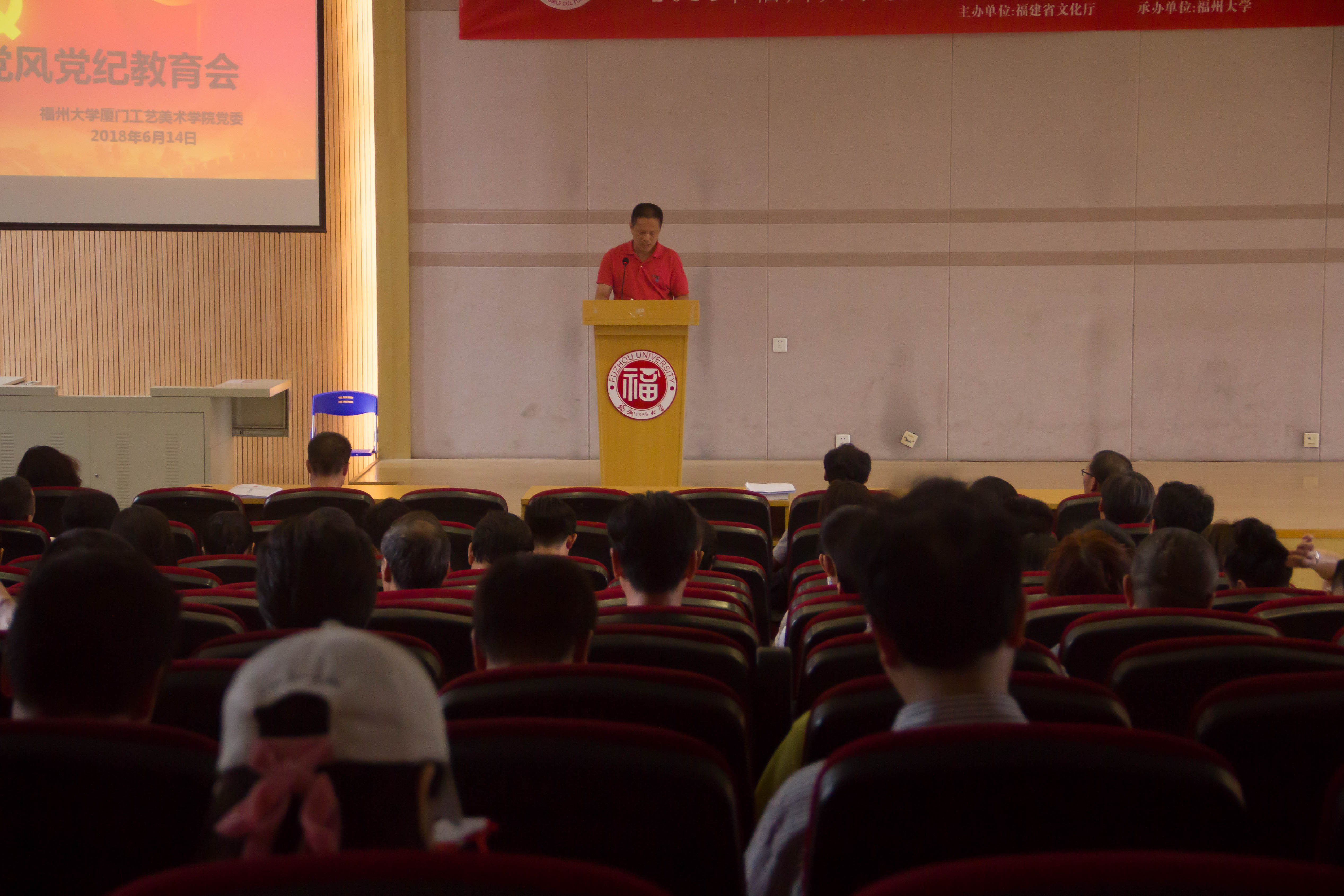 2018年6月14日下午,学院党委黄阿火书记在2号教学楼311报告厅主持召开学院全体教职工党员党风党纪教育学习会。黄书记在会上传达学习陈永正同志在肉漫