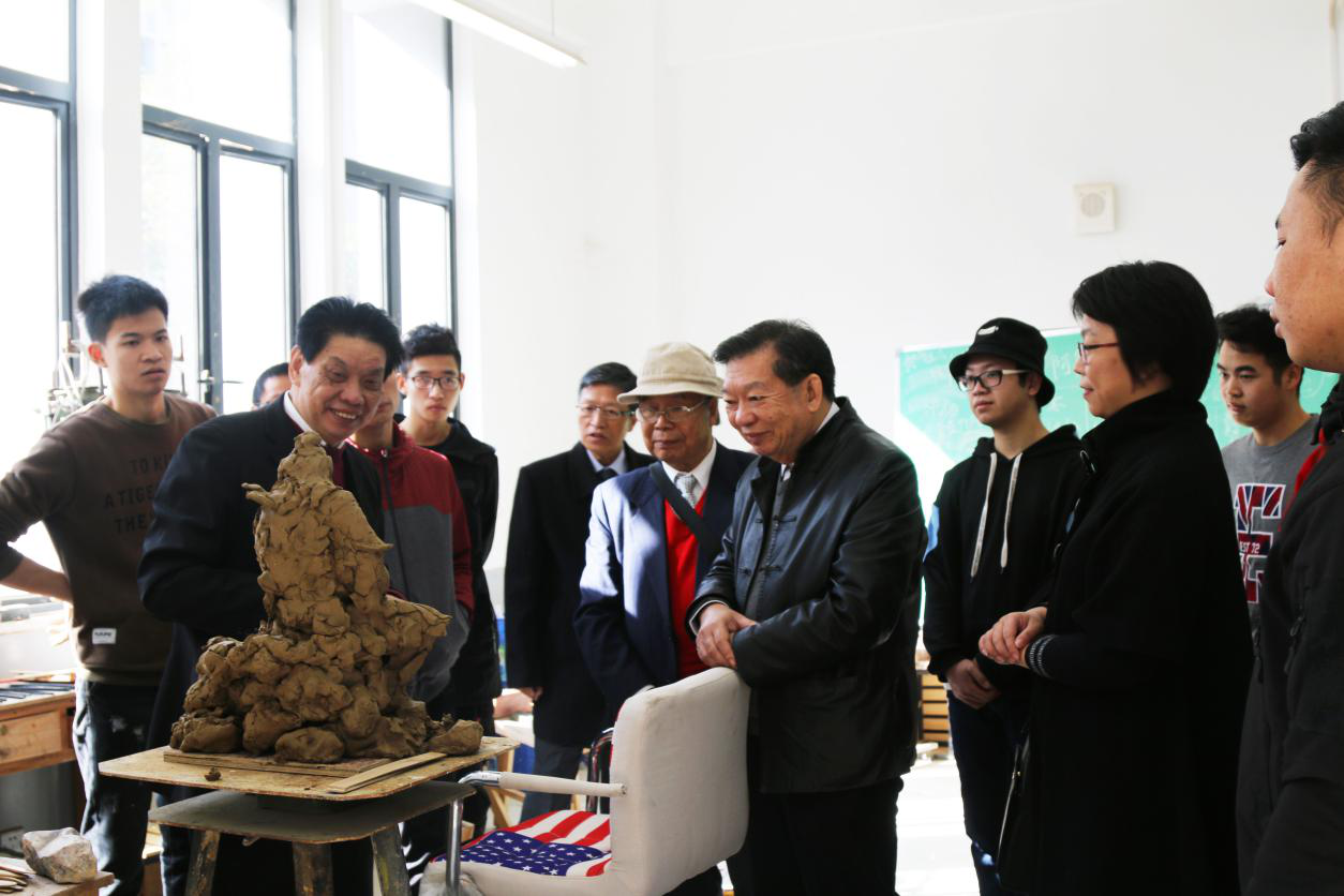 交谈后,梁又照教授一行在工业设计系主任洪歆慧的陪同下参观了学院美术馆、漆画展厅、工艺美术系大师工作室,以及工业设计系创新工坊和E硬件俱乐部,对肉漫