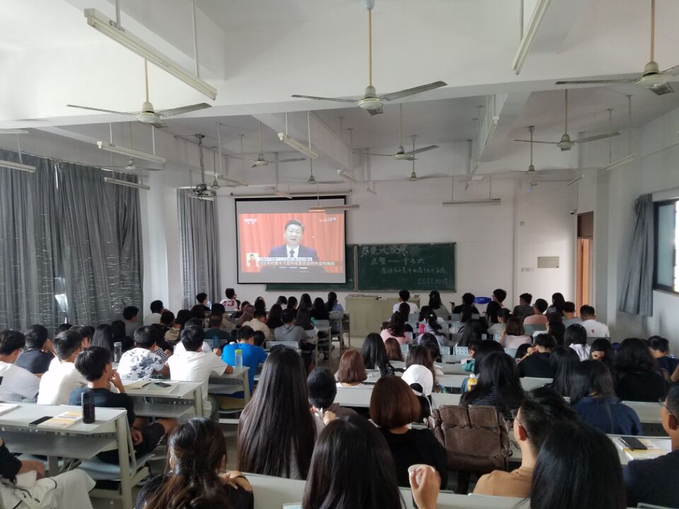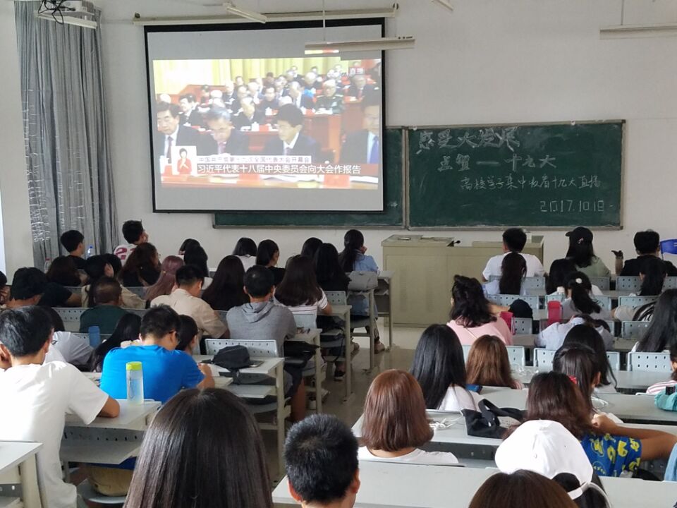 党委组织师生通过广播、电视、网络等形式认真收听收看党的十九大开幕会盛况。学院直播教室庄严隆重,师生们聚精会神听取大会报告。