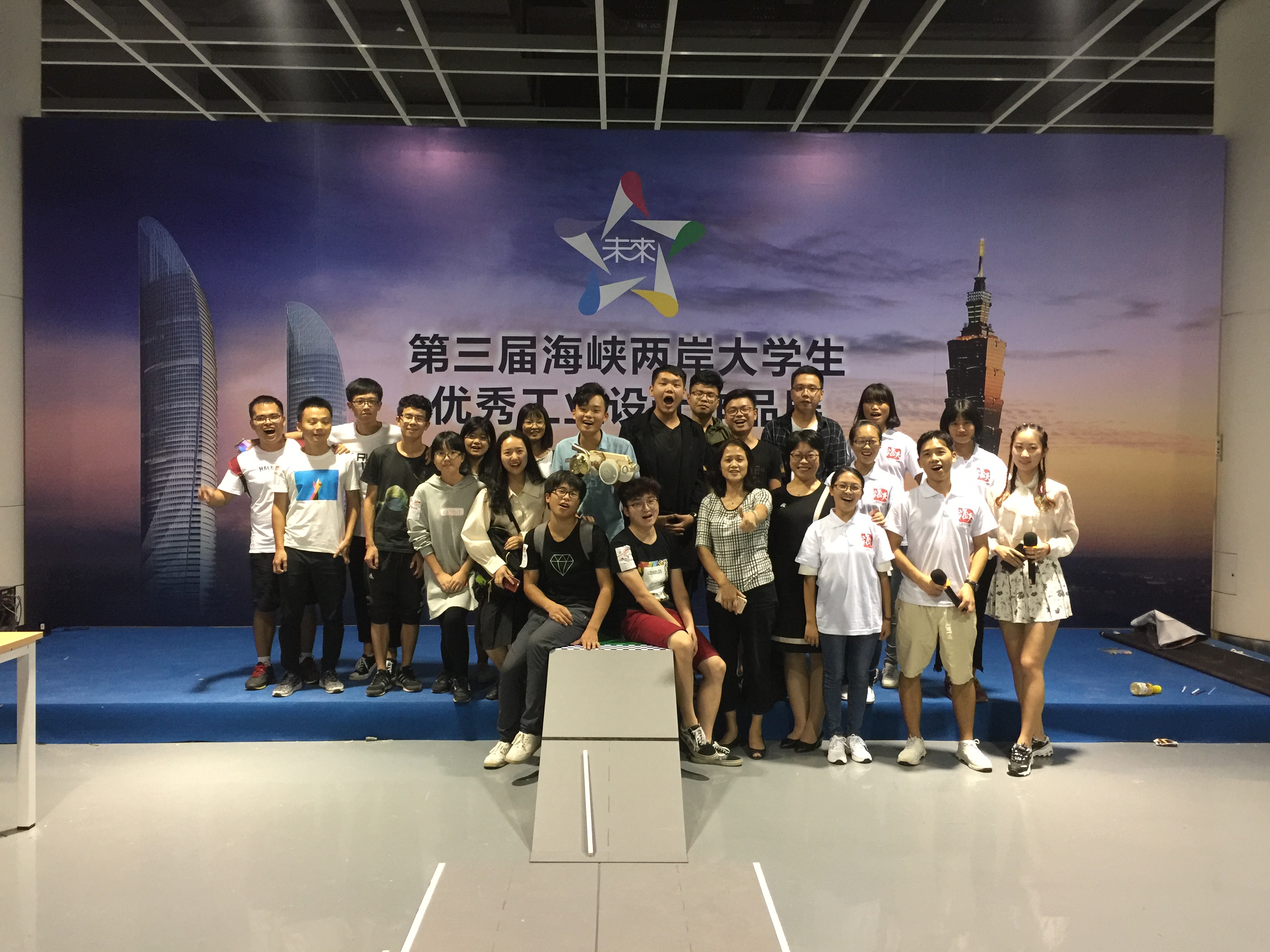 工业设计系师生团队参与策划执行的“第三届‘乐色宣言’海峡两岸大学生混编设计挑战赛”也是精彩纷呈,来自海峡两岸的135名大学生以抽签的方式混合组编成27支设计团队,在五小时内利用工业生产边角废料完成了无齿轮动力小车的设计、制作,并进行现场试跑,根据滑行距离与设计创意一决高下。最终 2016级工业设计专业苏旗同学所在团队获得银奖,蔡伟雄、叶家正同学所在团队获得铜奖,王炎、张晨阳同学所在团队获得“最具闽台特色奖”
