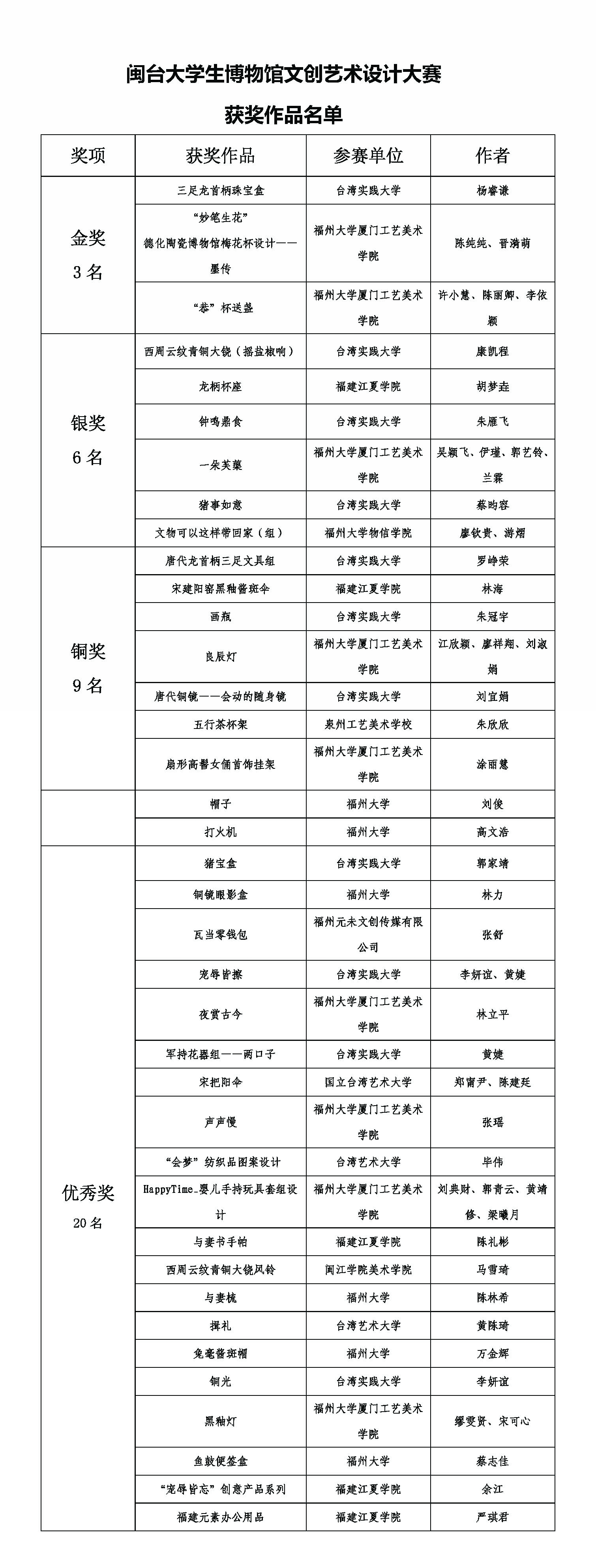 由闽台大学生博物馆主办的“中国梦 海峡情 文博缘——闽台大学生博物馆文创艺术设计大赛”已于2017年5月12日完成大赛的终评活动,最终选出金奖(3名)、银奖(6名)、铜奖(9名)、优秀奖(20名)。肉漫 喜获金奖(2名)、银奖(1名)、铜奖(2名)、优秀奖(4名)。以上获奖作品,福建博物院将在媒体上进行刊登宣传,并与获奖个人达成合作意向。