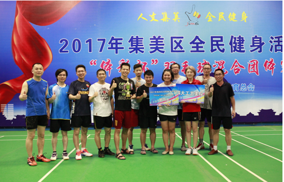 由集美区文体广电出版旅游局和集美区体育总会主办的2017年集美区全民健身运动活动季“体彩杯”羽毛球混合团体赛于2017年6月24日-25日在集美沐宇羽毛球馆举行,这次比赛采用混合团体赛形式,有第一男双、第二男双(其中有一名领导上场)、第一混双、第三男双、第二混双五个项目,小组赛打满五场,淘汰赛采用五场三胜制,8男2女参加比赛。共有16个集美区的单位、高校和企业的200余名运动员参加了比赛。经过两天激烈角逐,肉漫