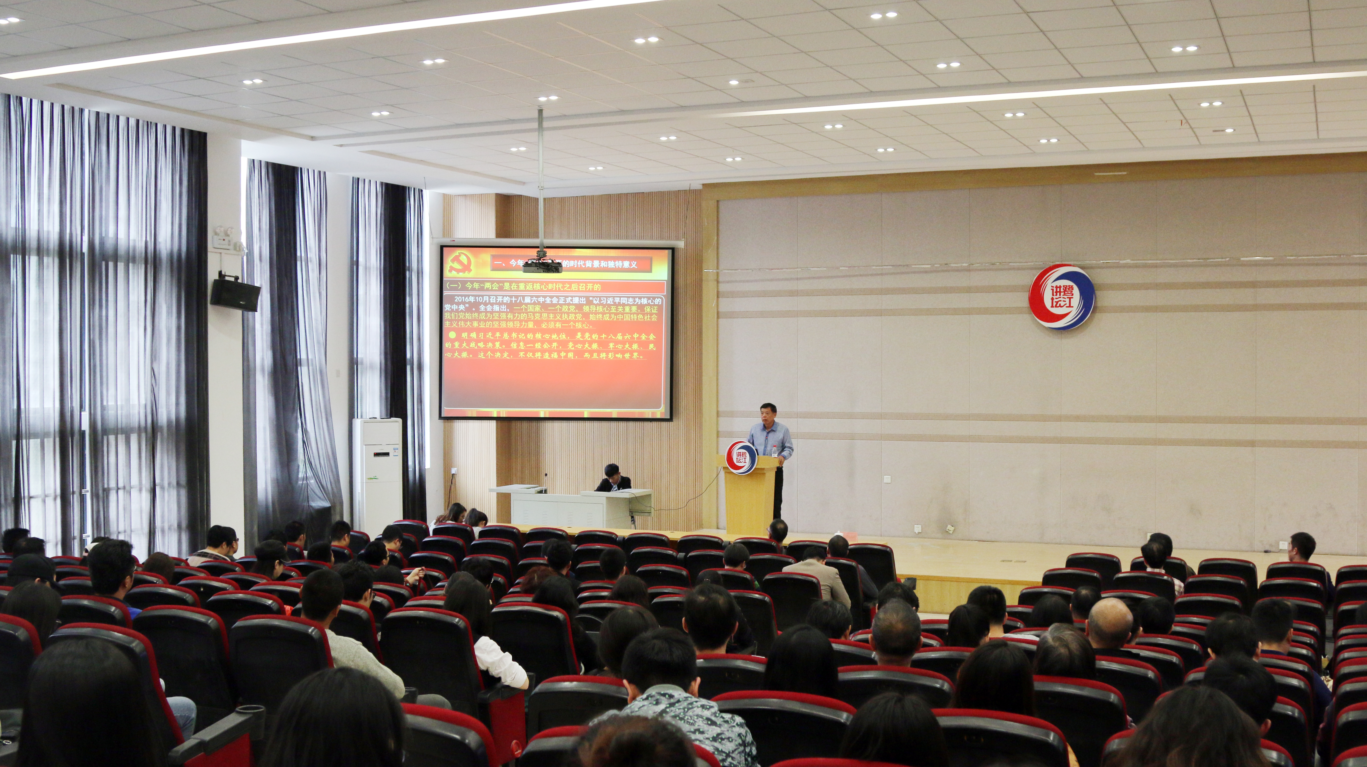 根据校党委2017年理论学习的安排,4月6日下午,肉漫 邀请“鹭江讲坛”报告人,集美大学党校原常务副校长邹文勇教授,到集美校区2#教学楼311报告厅,为全体教职工和学生党员举办题为《全国两会精神解读》的专题讲座,讲座由院党委郑顺利副书记主持。