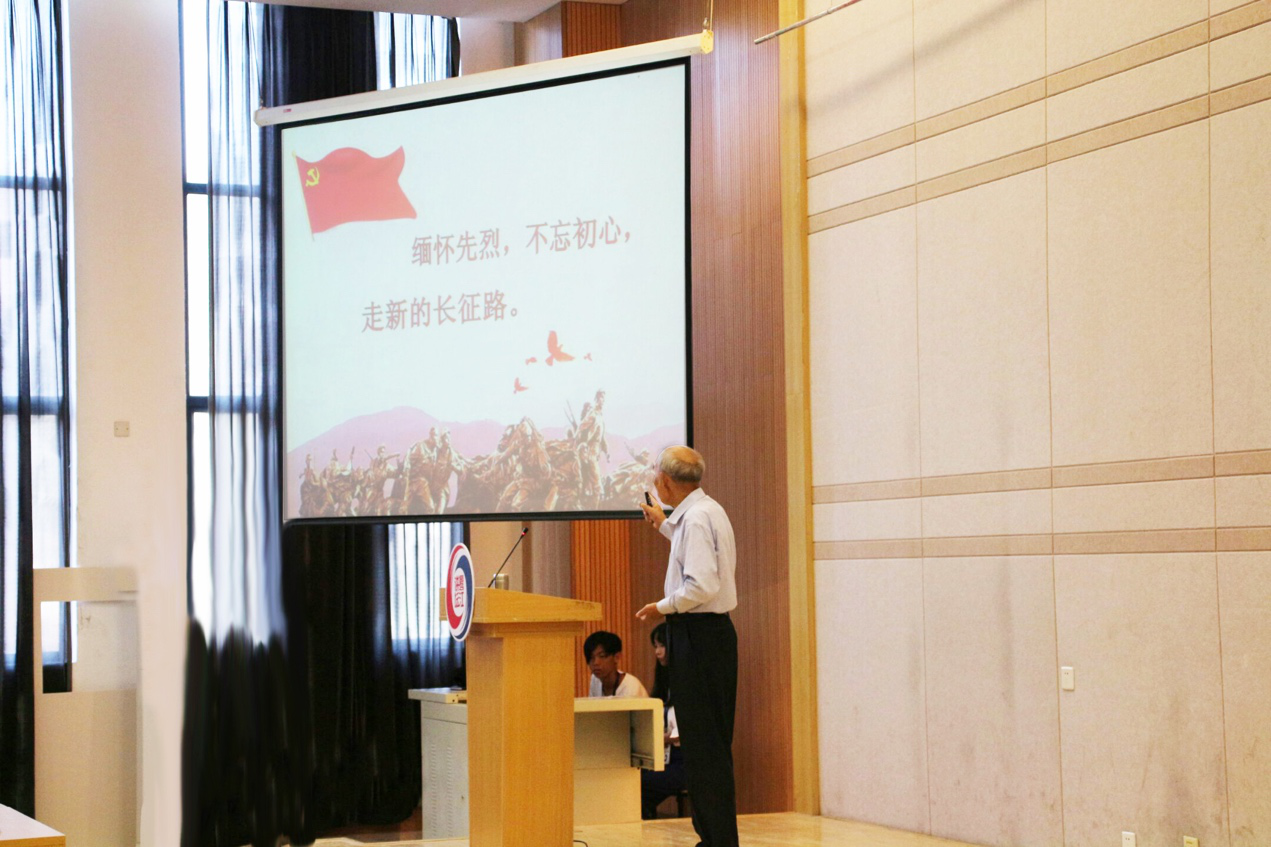 “红军不怕远征难,万水千山只等闲,五岭逶迤腾细浪,乌蒙磅礴走泥丸,金沙水拍云崖暖,大渡桥横铁索寒,更喜岷山千里雪,三军过后尽开颜!”施教授讲到红军远征中的动人事迹时,声情并茂,语带颤抖,在场的党员也深受感染,仿佛就置身艰难的长征路上,无一不被深深的感动、震撼着。