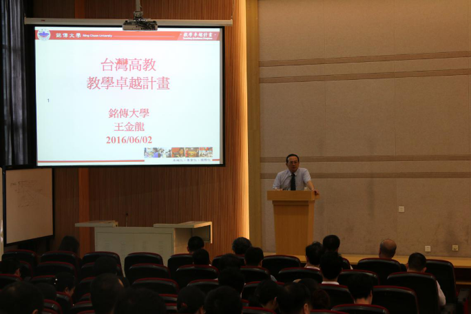 为全体教职工做《台湾高教教学卓越计划》主题讲座,分享铭传大学的办学管理经验。