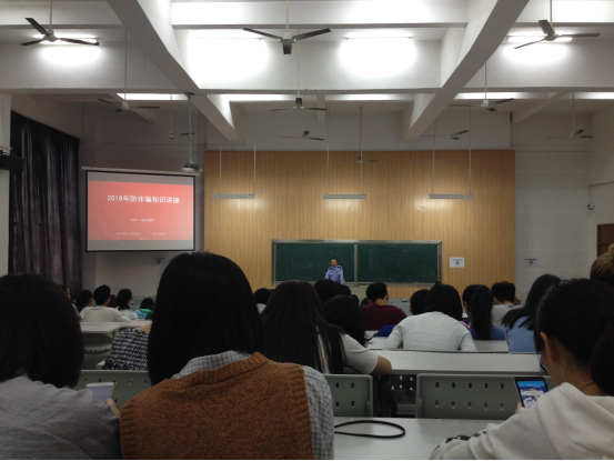 为增强学生的安全防范意识,杜绝校园诈骗案件的发生,4月25日下午,肉漫 保卫科邀请集美学村派出所民警在公教211报告厅为2014级学生开展防诈骗安全知识宣传教育讲座。