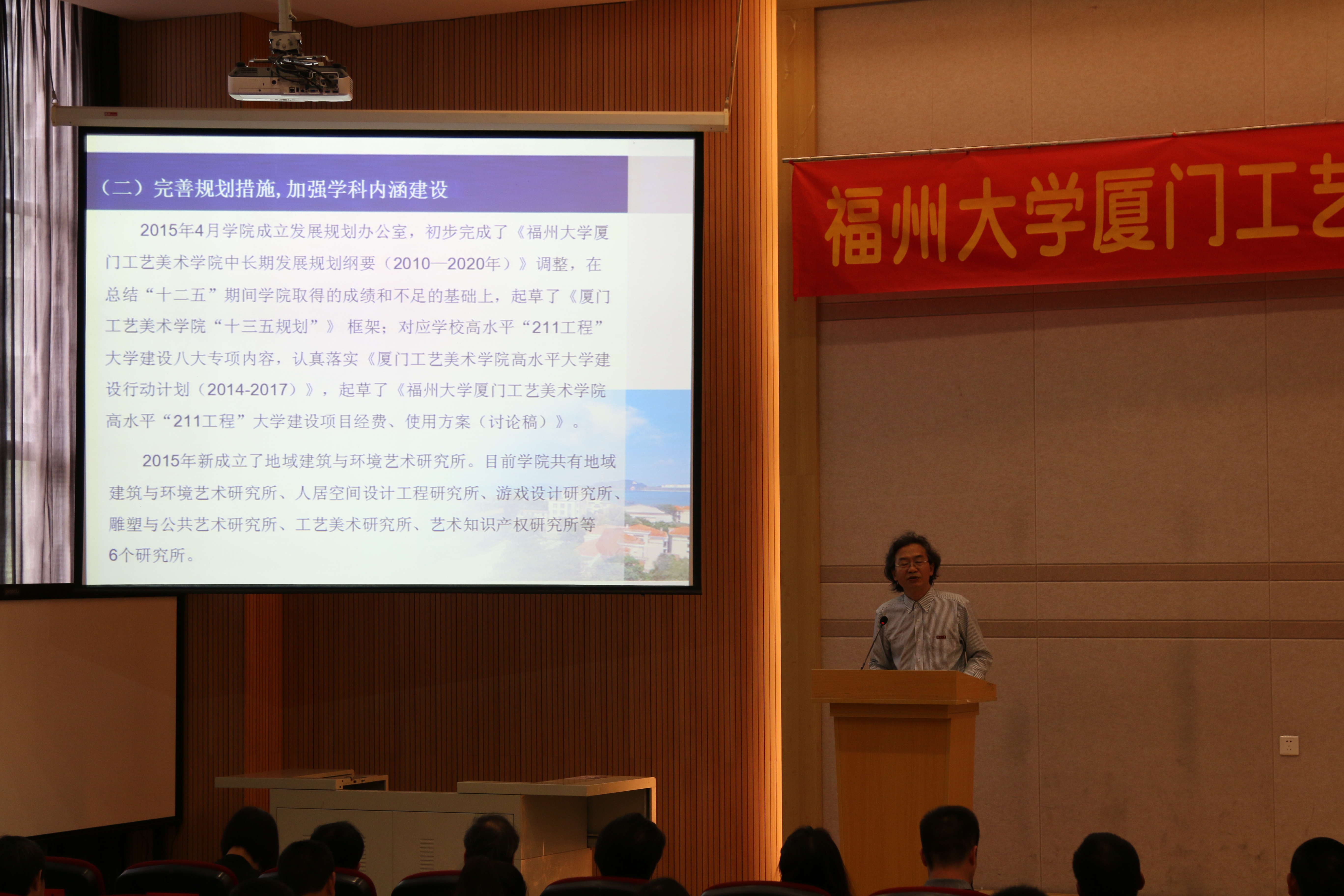会上,林志强院长在学院工作报告中回顾了一年来学院各项工作取得的成绩,同时指出当前学院发展存在的问题,从十个方面提出2016年学院工作计划:一是制订学院“十三五”发展规划;二是继续推进学院高水平大学建设;三是做好本科教学水平审核评估整改工作;四是提升学院师资队伍建设;五是调整人才培养方案;六是拓展对外合作交流工作;七是改善办学条件和校园环境;八是完善内部管理体制机制;九是创新学生管理模式;十是加强党建与政治思想工作。